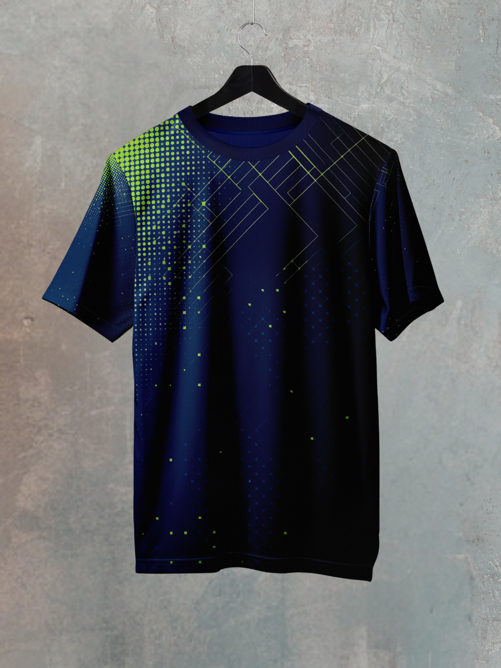 Dominate the Game in the Midnight Blue Grid Burst Sports T-Shirt Tired of ordinary sportswear...