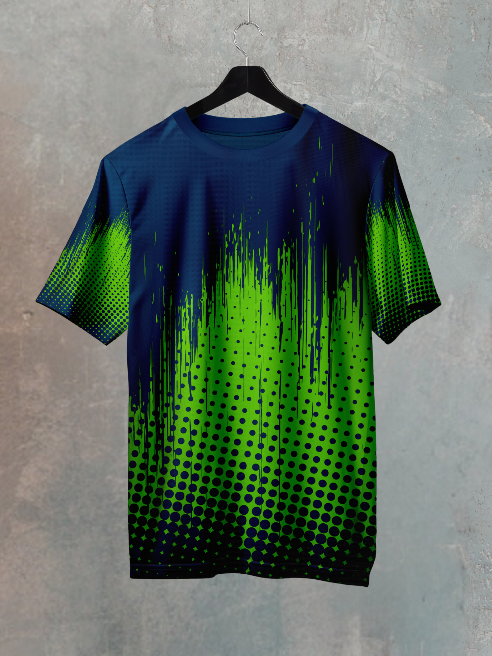 Unleash Your Glow in the Dark with the Neon Black Scattered Pattern Sports T-Shirt Step...