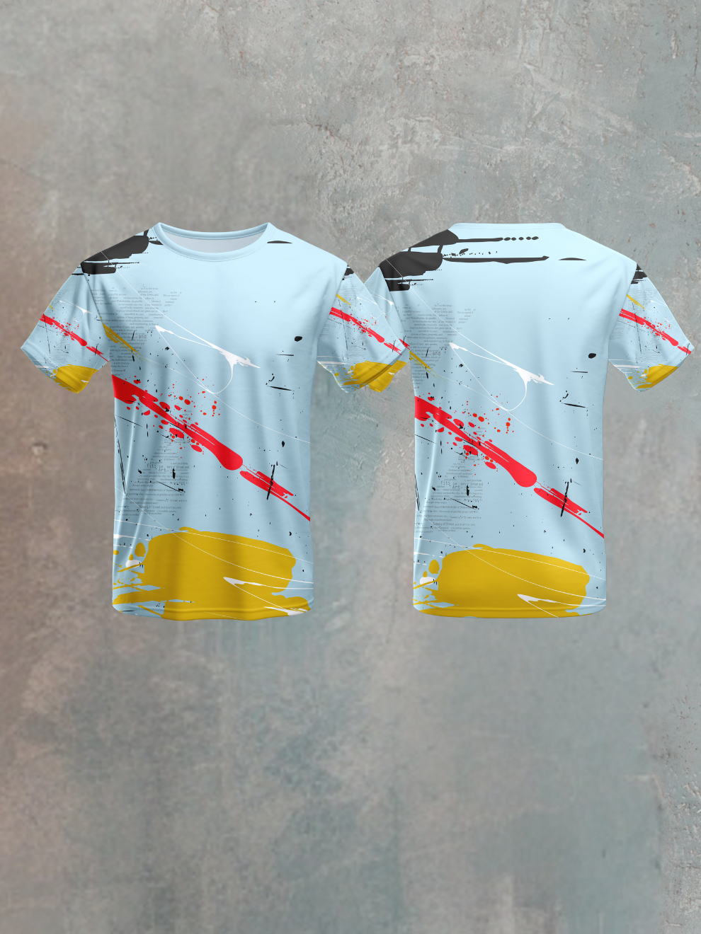 Unleash your inner artist and athlete with the Aqua Blue Brush Stroke Pattern Sports T-Shirt. Where the energy of creation meets the science of performance, this unique t-shirt is for the man who paints his own path—both on and off the field.