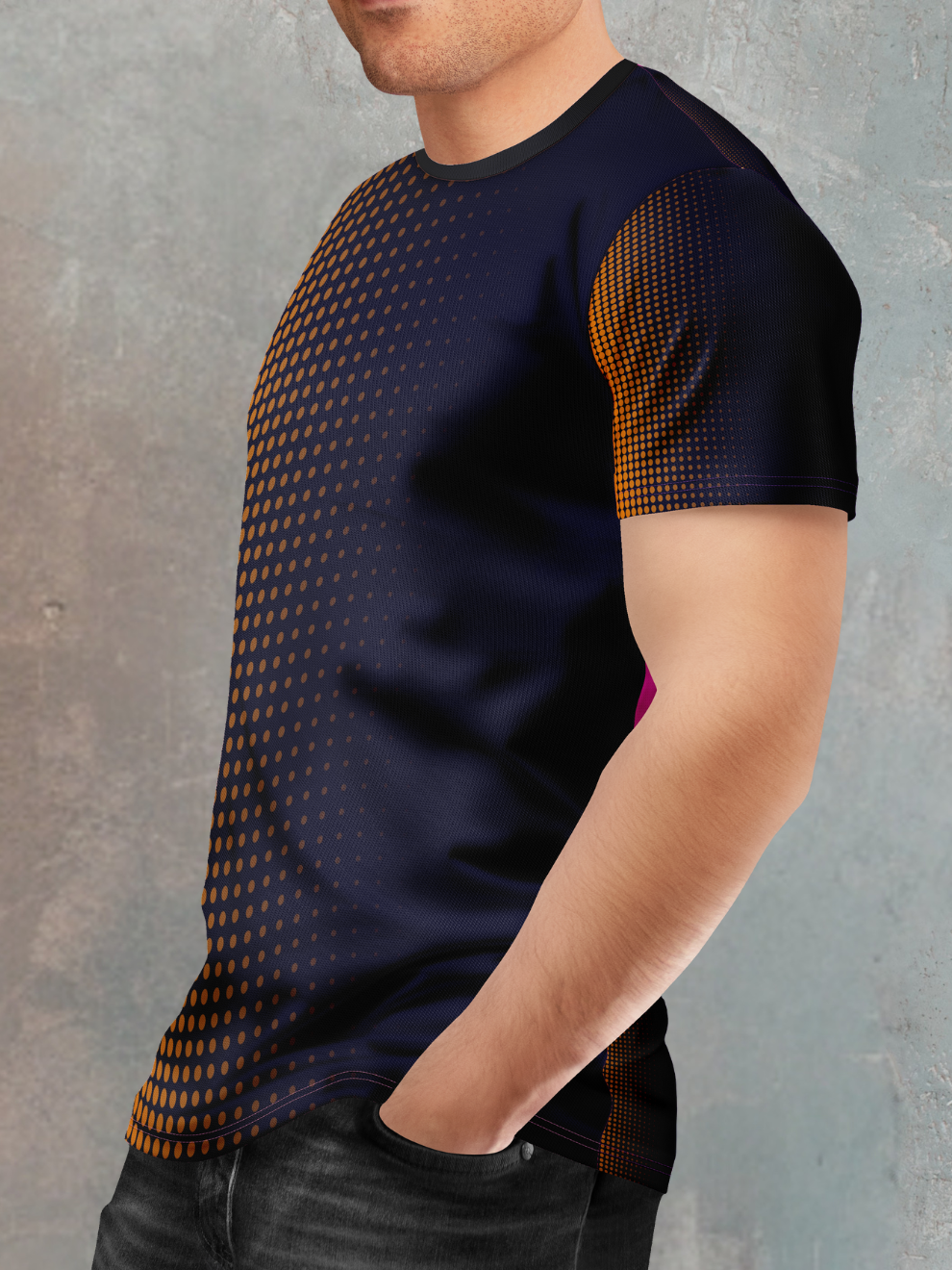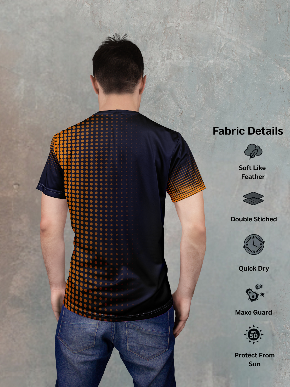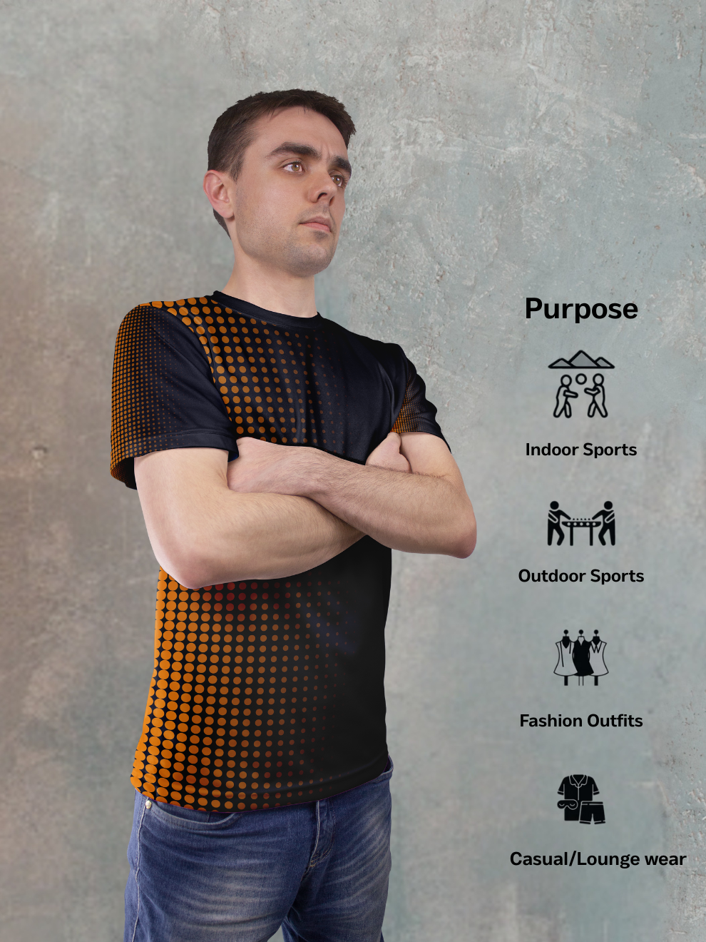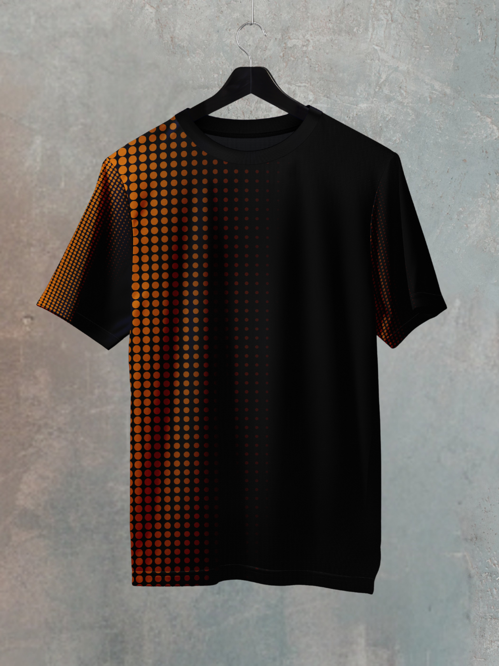 Unleash your power and precision in the Black Flare Dot Pattern Sports T-Shirt—where bold design meets uncompromising performance. This premium sports t shirt for men features a classic black base ignited by an energetic flare dot pattern, creating a dynamic visual of speed and intensity. Engineered for the athlete who thrives under pressure, this crew neck t shirt combines street-smart style with elite athletic technology to dominate every session.