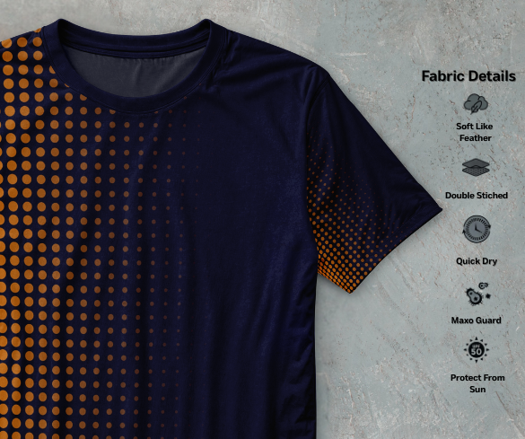 Advanced Sweat-Control Technology: Constructed from 170 GSM honeycomb Poly Mesh Fabric, this best sports t shirt for men delivers superior breathability and moisture management. The innovative fabric structure promotes optimal airflow, while the integrated Dri-FIT technology pulls sweat away from your skin, keeping you dry, cool, and fully focused through the most intense matches and workouts.