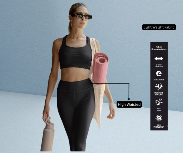 (luxury black workout leggings, high-waisted Lycra tights, performance gym leggings India, breathable fitness pants, women's premium athletic wear online store)