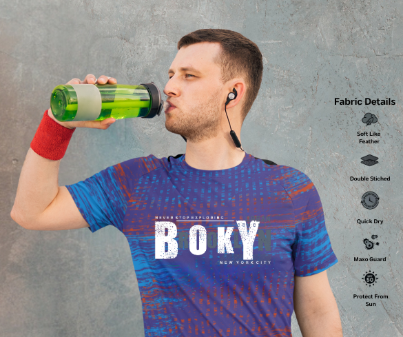 Blue & Red Glitch Effect Slim Fit T-Shirt for Men – Futuristic Performance Wear | Maxosports