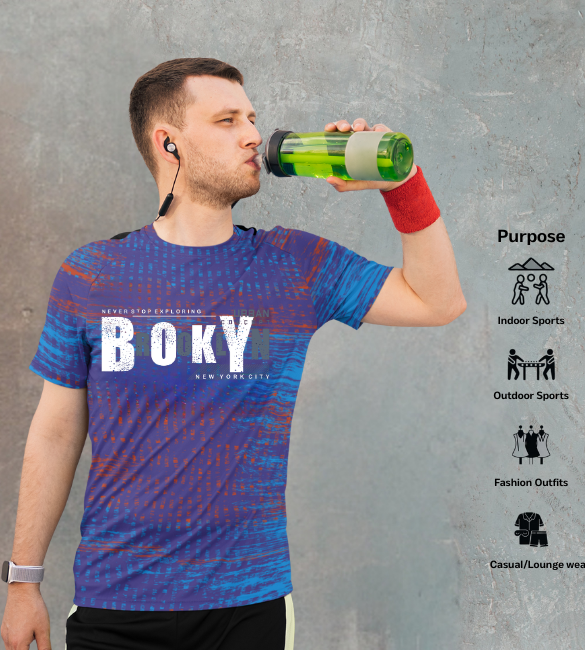 Bolt Blue Strike Zone Pattern Slim Fit Printed T-shirt for men