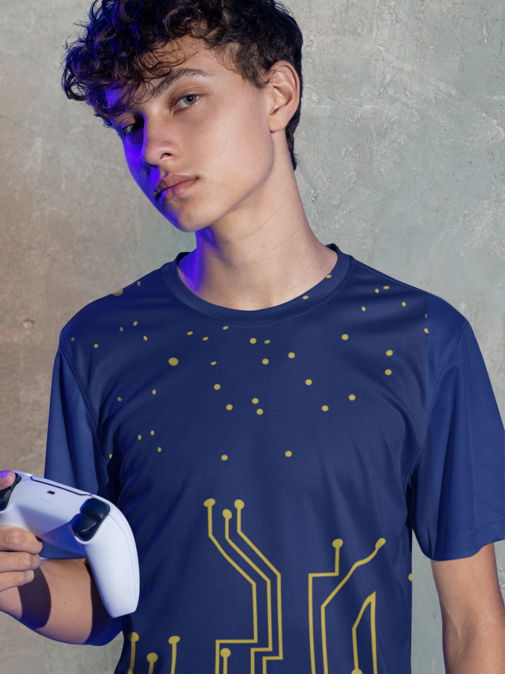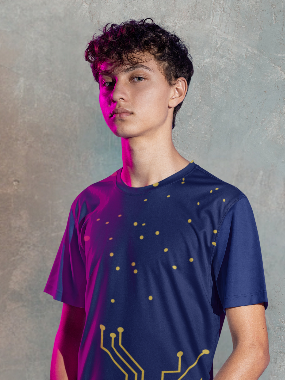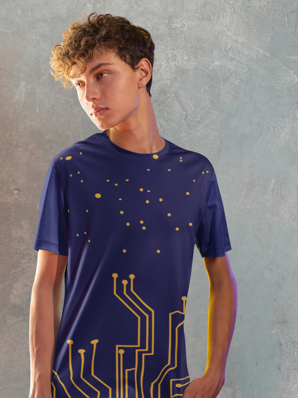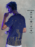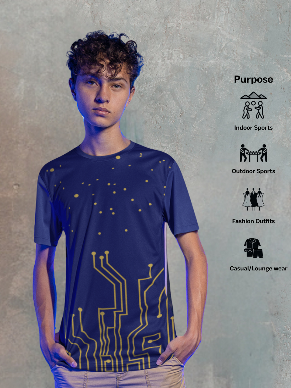 Circuit Navy Blue Tech Spark Pattern Slim Fit Sports T-Shirt for Men – Performance Meets Style!