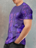 Crimson Violet Grid Storm Pattern Sports T-shirt for men