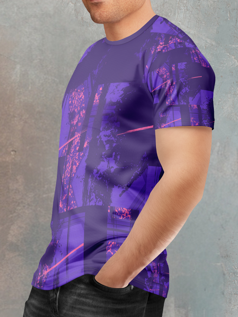 Bold, Structured Style: The powerful crimson and violet color combination, enhanced by the geometric grid storm pattern, creates an undeniable visual impact. This versatile crew neck t shirt bridges high-performance sportswear with street-ready style, ensuring you look as formidable as you perform.