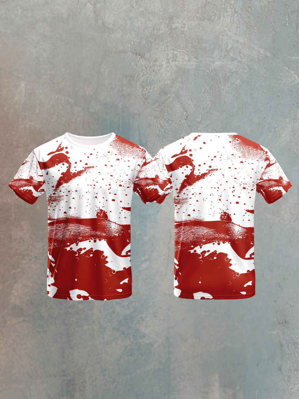 Crimson White Brush Art Strike Pattern Sports T-shirt for men