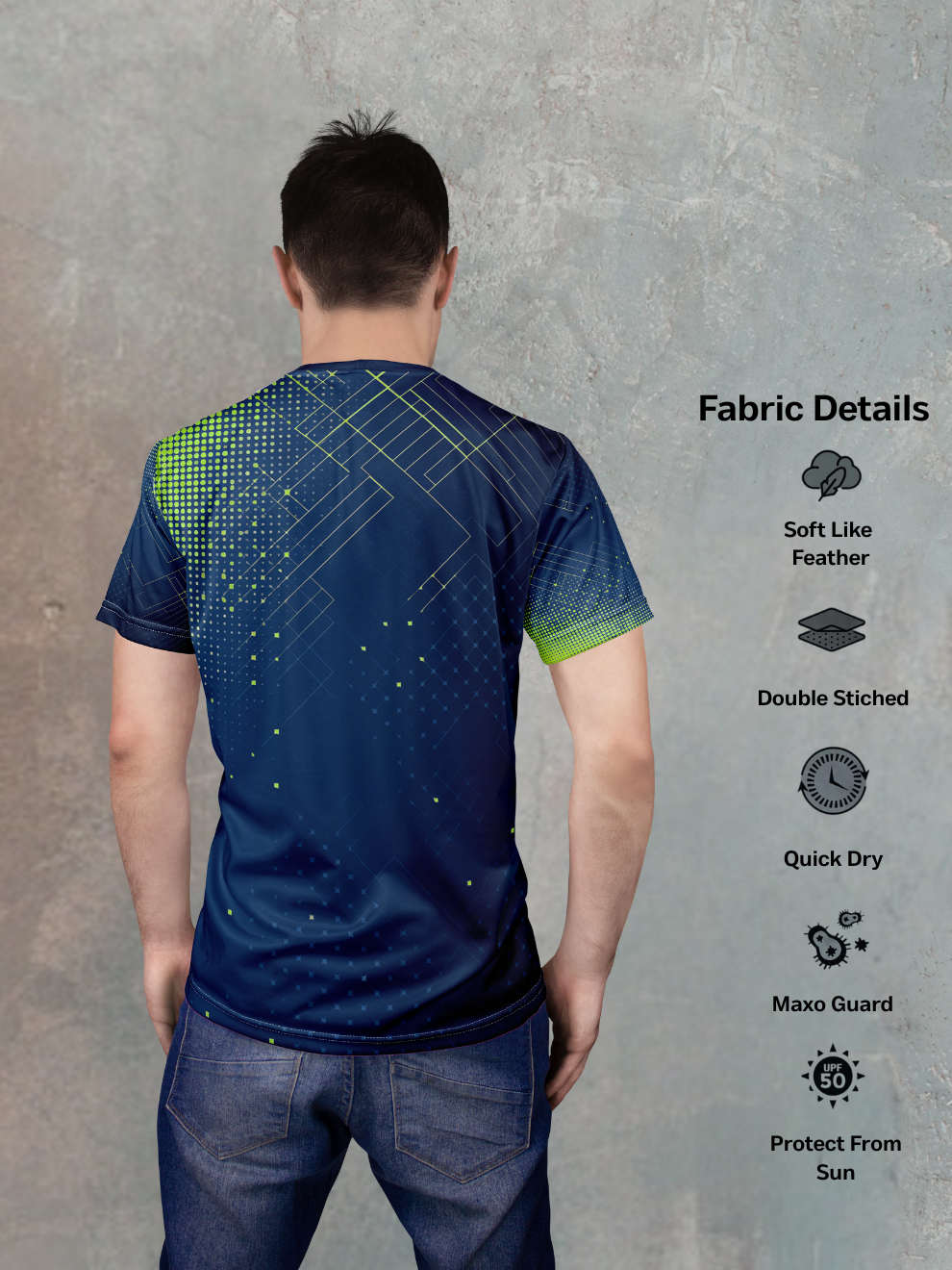 Cyber Green Pixel Flux Pattern Sports T-shirt for men