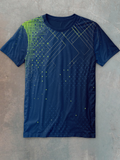 Charge Your Style: Cyber Green Pixel Flux Pattern Sports T-Shirt
