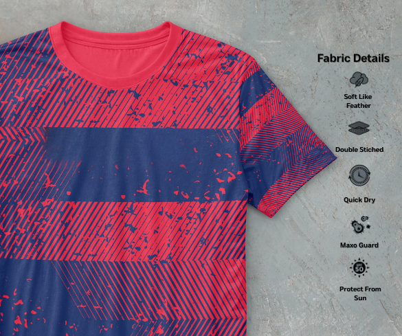 Strategic Breathability & Sweat Control: Constructed from 170 GSM honeycomb Poly Mesh Fabric, this best sports t shirt for men uses its diagonal mesh pattern not just for style, but for smart ventilation. The structure enhances airflow across your core, while the integrated Dri-FIT technology rapidly wicks moisture away, keeping you dry, cool, and focused from warm-up to victory.