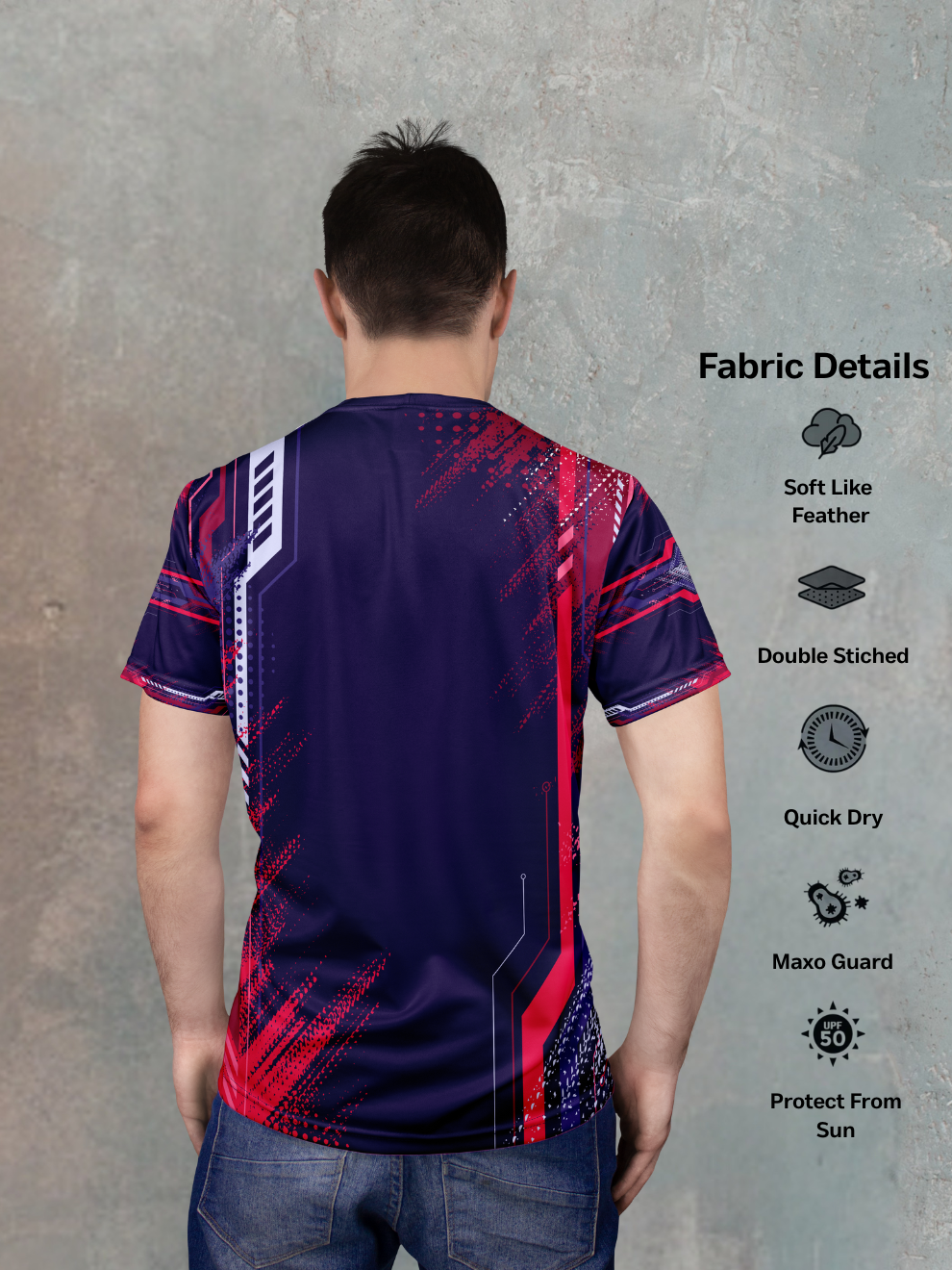 Power up your performance wear. The Maxosports Digital Navy Blue Circuit Grid Sports T-Shirt for Men merges cutting-edge aesthetics with high-performance engineering. This sports T-shirt for men features a striking digital circuit board pattern, symbolizing energy and connectivity, all printed on a deep navy base for ultimate versatility. Designed for the modern athlete and tech enthusiast, it’s built to be the best sports T-shirt for those who demand style that matches their drive.