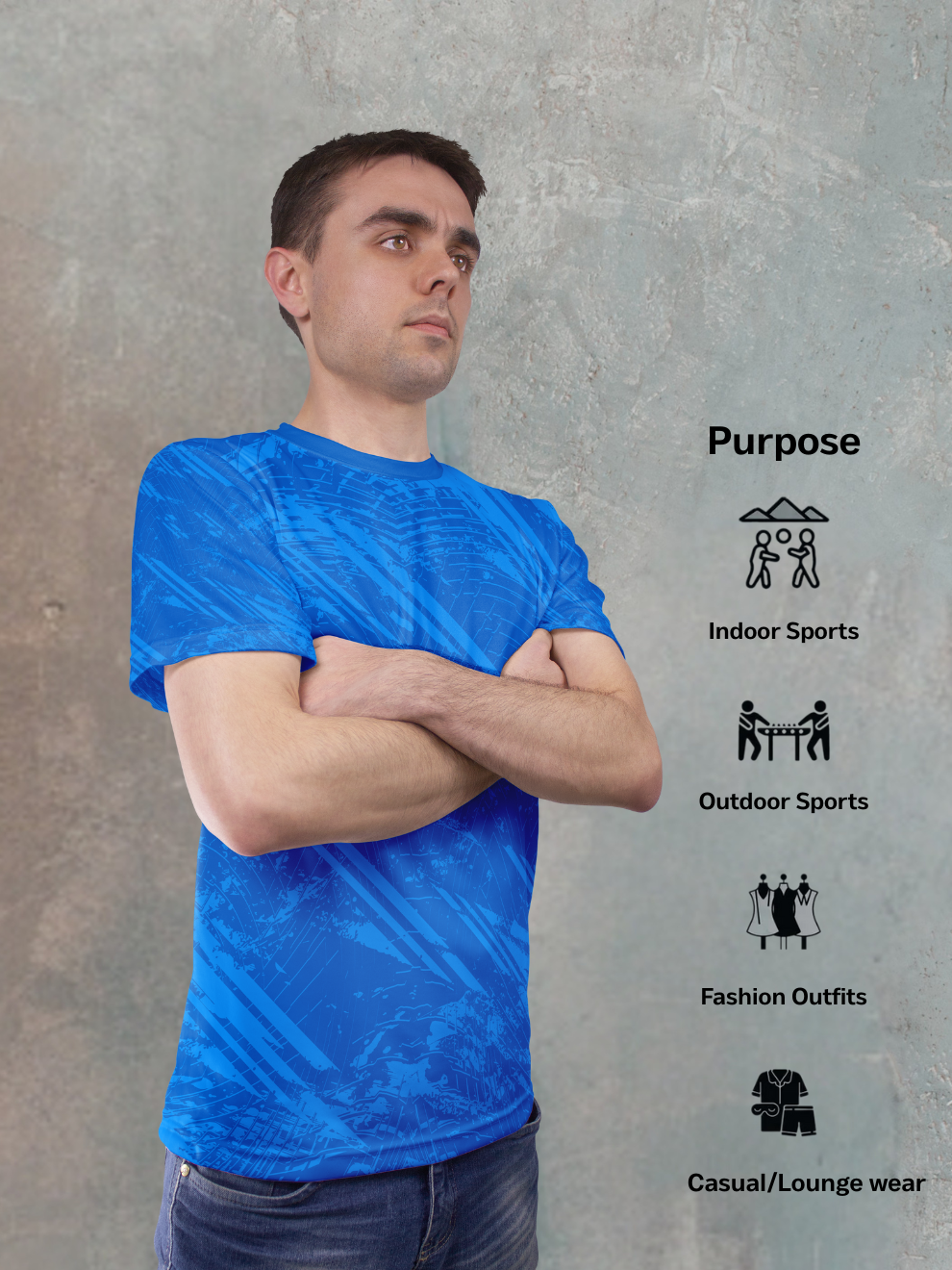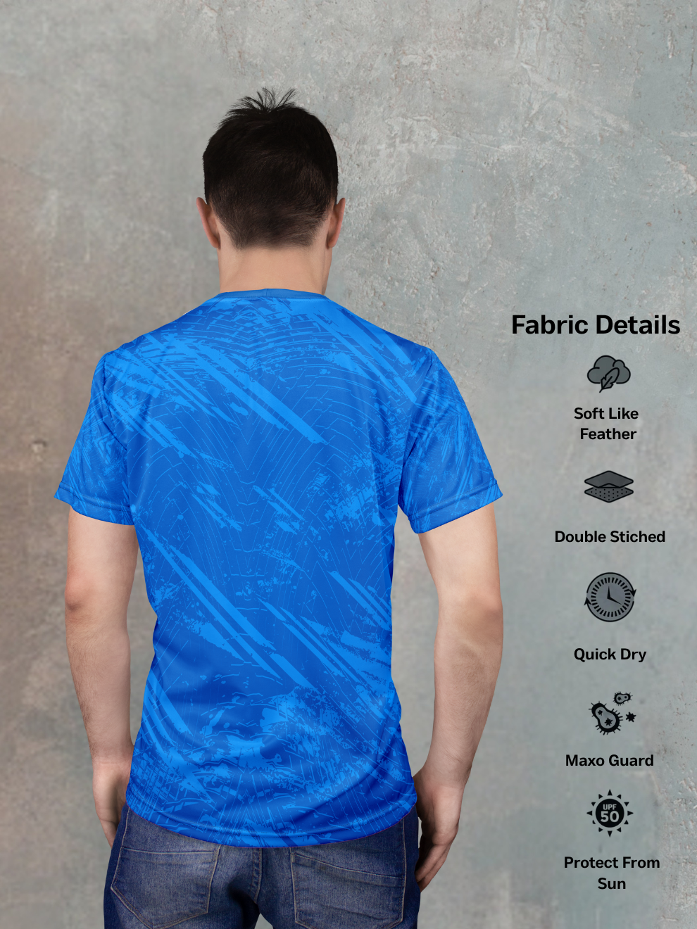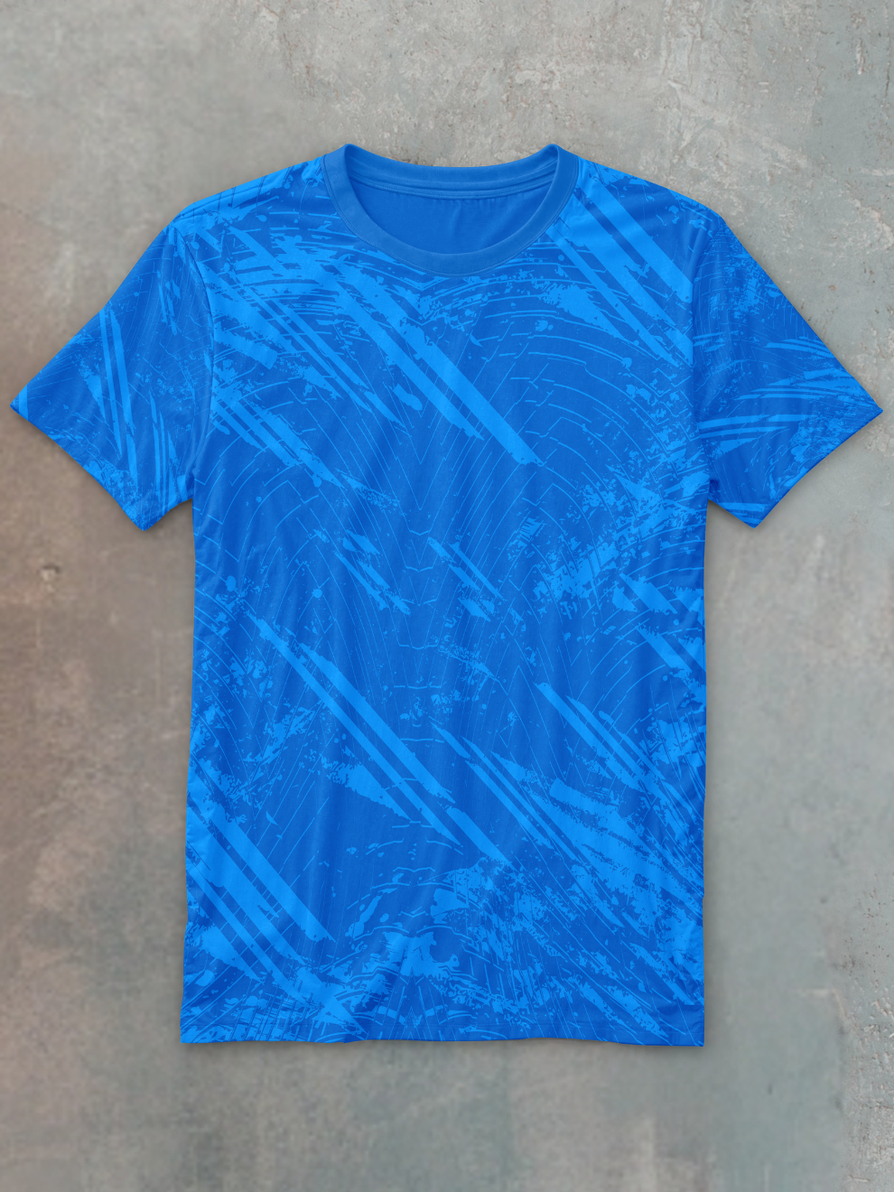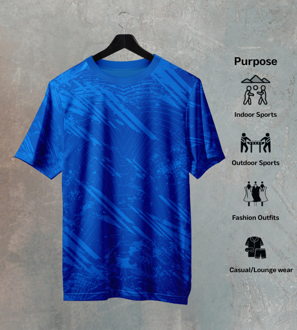 This isn't just blue—it's Electric Blue. Charged and luminous, this vibrant hue is slashed with a dynamic Diagonal Streak Pattern, mimicking the speed of a lightning bolt or the blur of unstoppable motion. This bold visual statement ensures you are seen, making this far more than a basic sports t shirt—it's a declaration of velocity and power.