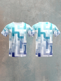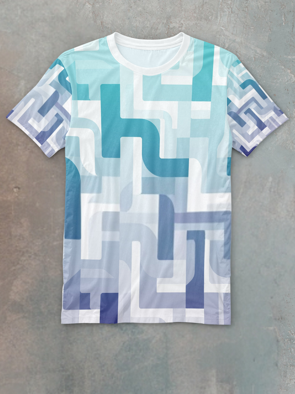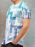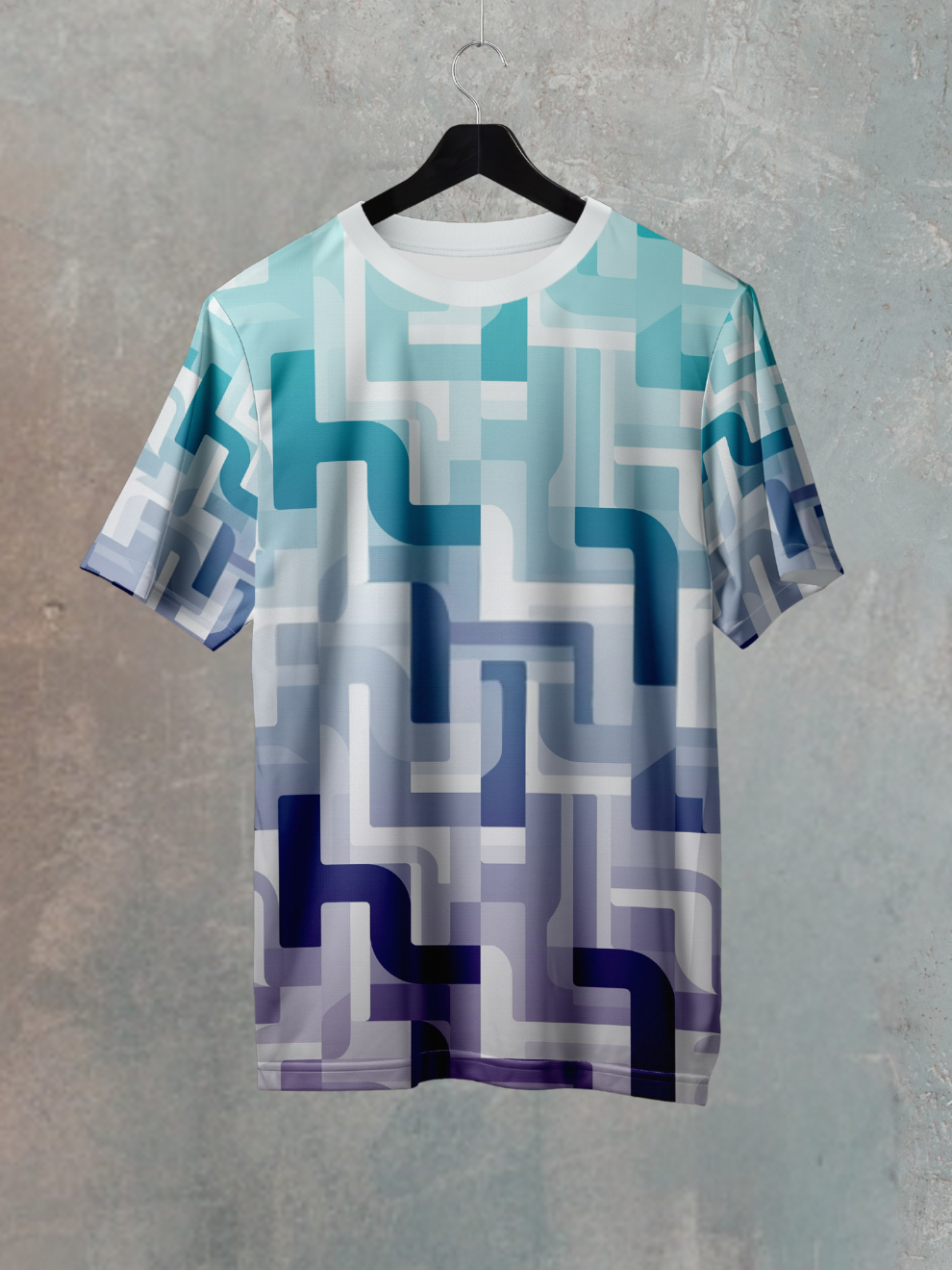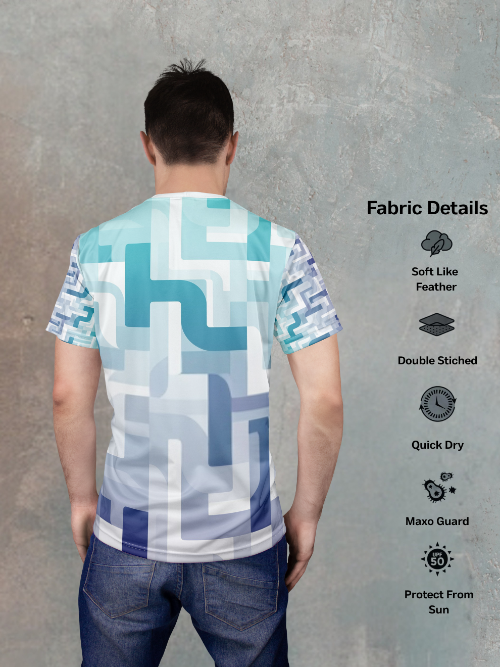 Gradient Teal Blue Loop Mesh Pattern Sports T-shirt for men