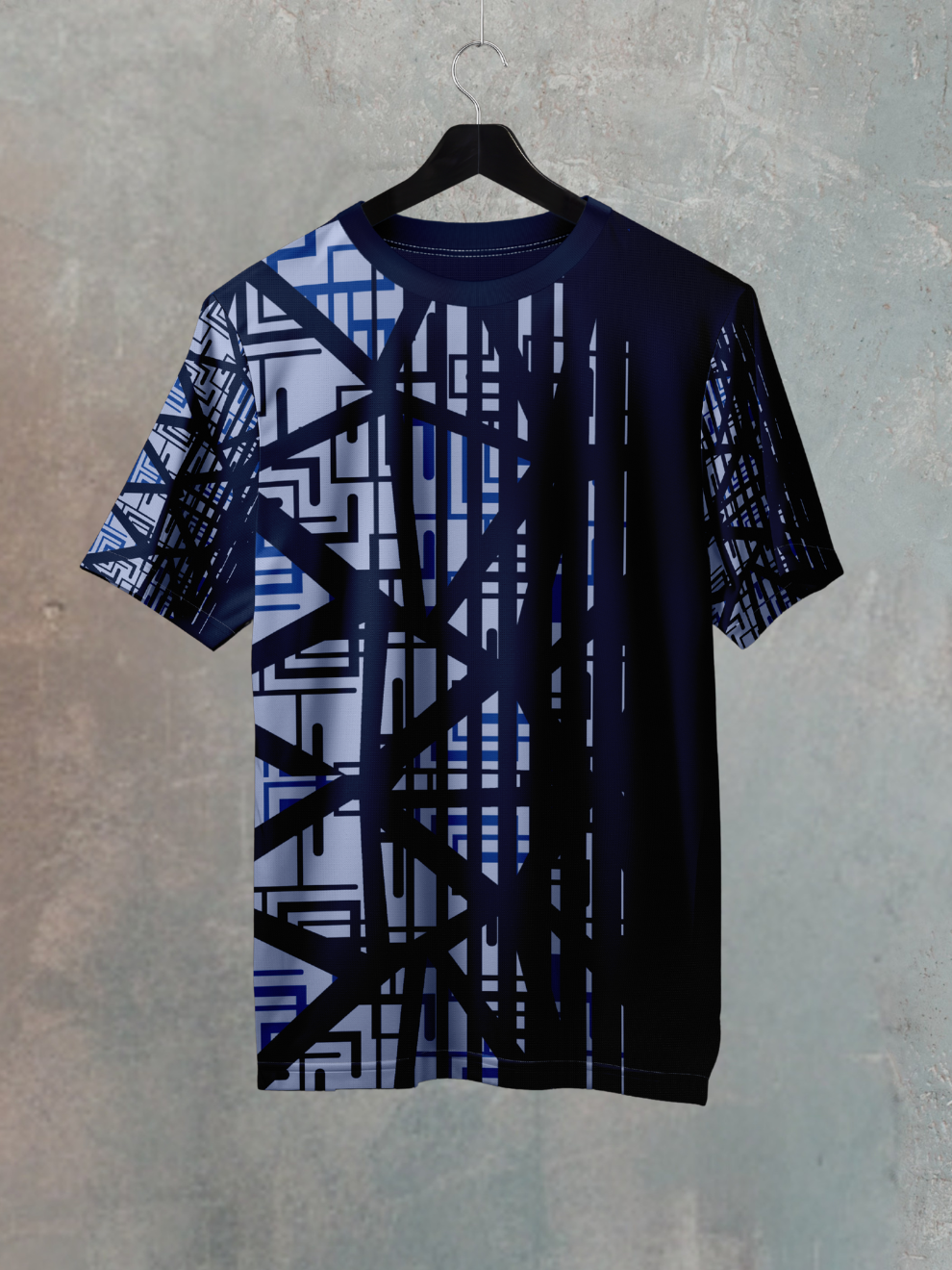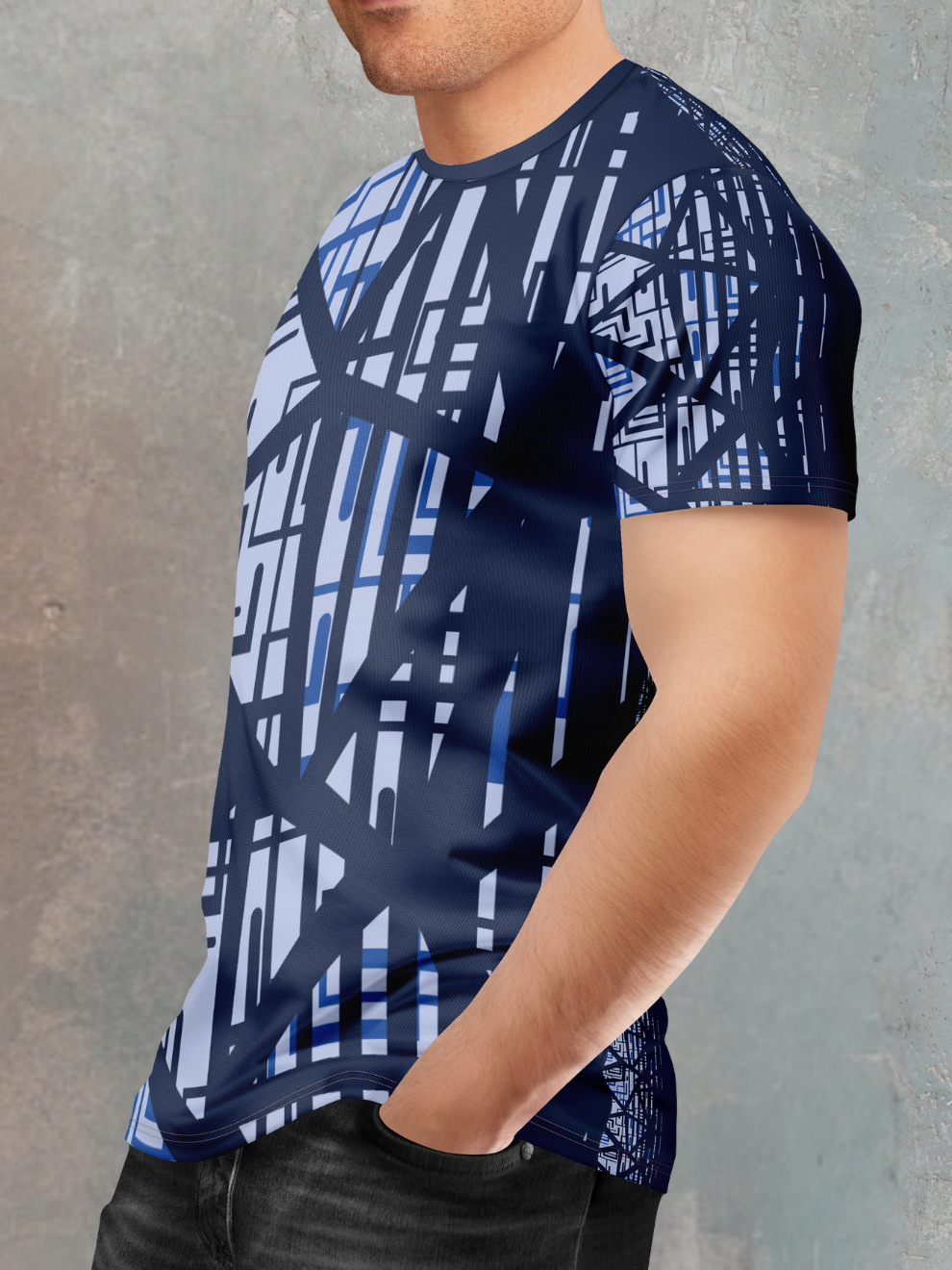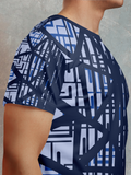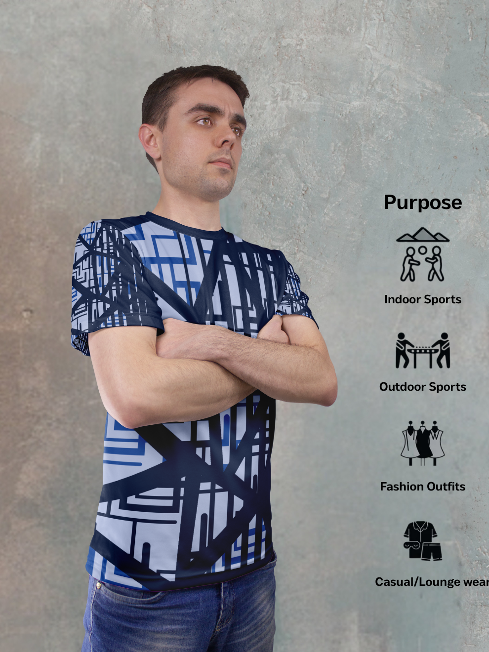 Ice Grid Blue Geometric Strike Pattern Sports T-shirt for men
