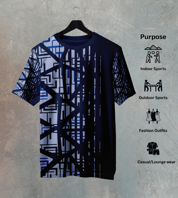 Tired of sports tees that fail to keep up? Step into the arena with confidence wearing the Ice Grid Blue Geometric Strike Pattern Sports T-Shirt. This isn't just another crew neck t-shirt; it's a high-performance gear engineered for the modern athlete. Featuring a dynamic geometric strike pattern in a cool, electrifying blue, this tee is built to ensure you look and feel unstoppable, whether you're scoring the winning goal or pushing your limits at the gym.