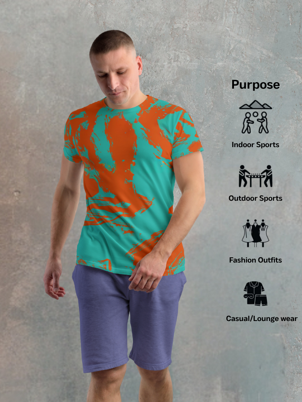 Step into the spotlight with our Ignite Teal Volt Mesh Pattern Slim Fit Sports T-Shirt—a striking fusion of electrifying style and next-level athletic performance. Designed for the modern athlete, this tee keeps you cool, dry, and confident whether you're dominating the field, hitting the gym, or making a statement on the streets.