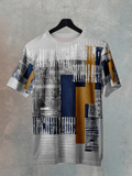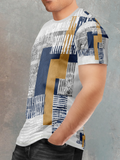 Ivory White Geometric Abstract Pattern Sports T-shirt for men