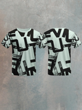 Korean Black Seamless Graphic Pattern Sports T-shirt for men