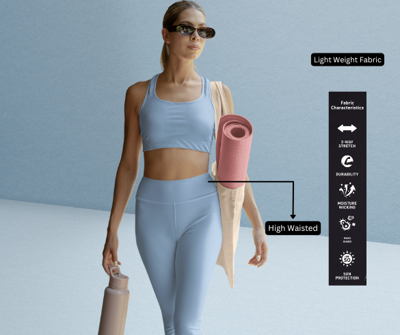 Brighten your workout wardrobe with these soft light blue leggings – perfect for staying cool and looking stylish at the gym or out and about.