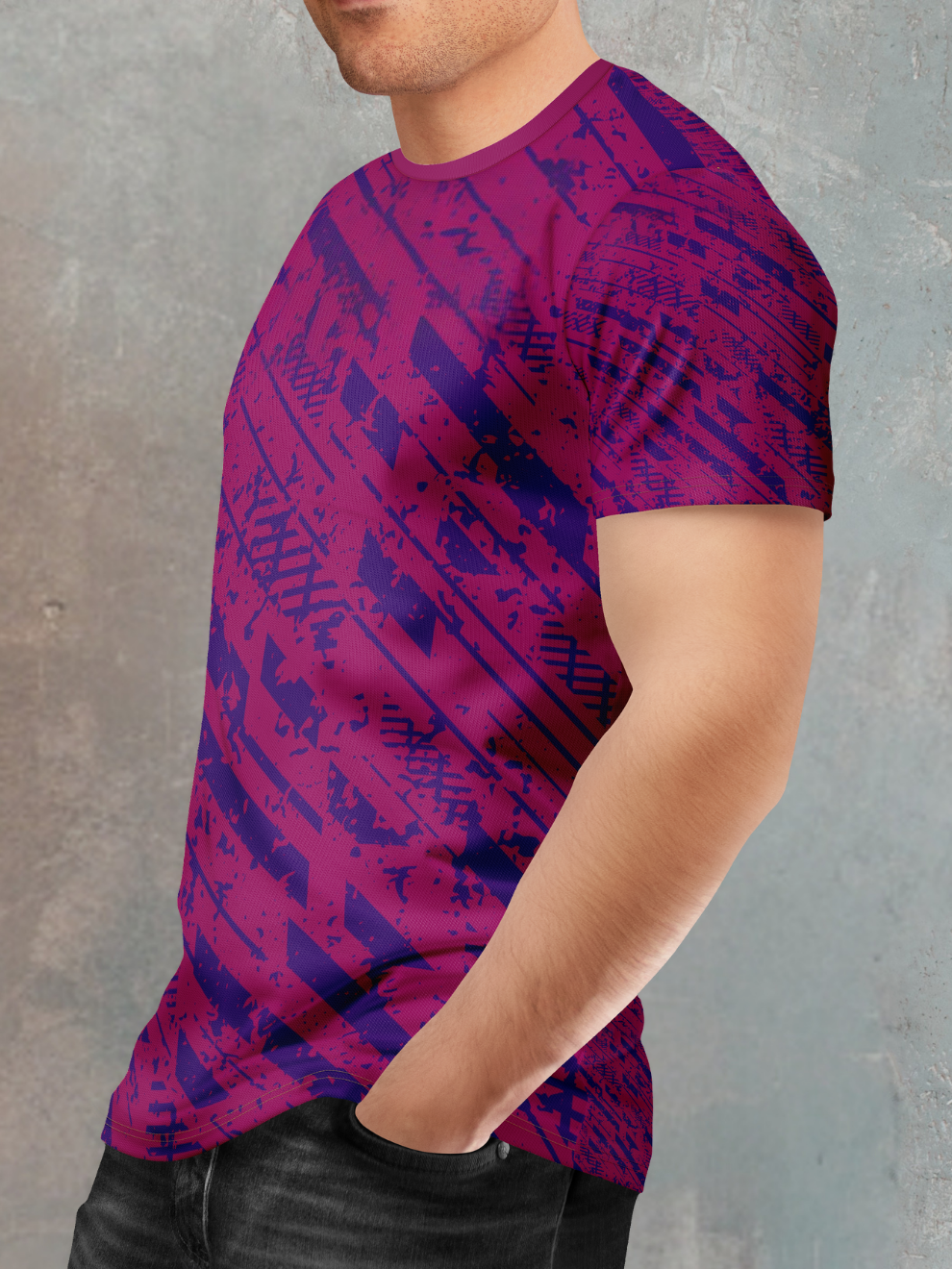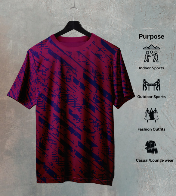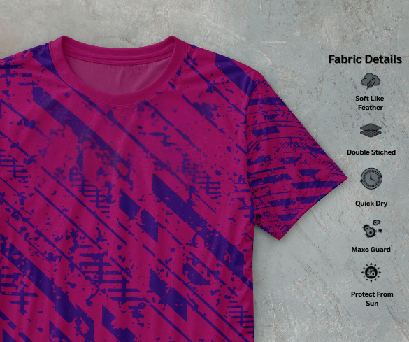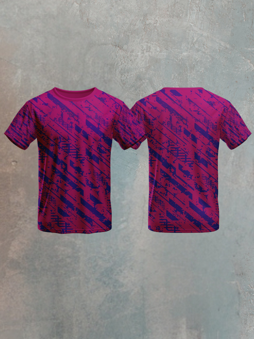 Harness the power of dynamic energy and futuristic design with the Magneto Fade Neo Strike Sports T-Shirt. This premium sports t shirt for men features a striking magneto color fade—blending deep violet to electric blue—supercharged by a sharp, tech-inspired neo strike pattern. Engineered for the athlete who lives at the intersection of innovation and intensity, this crew neck t shirt delivers a look and feel that’s as progressive as your training.