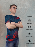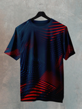 Midnight Blue Geometric Print Sports T-Shirt for Men | Structured Style, Peak Performance