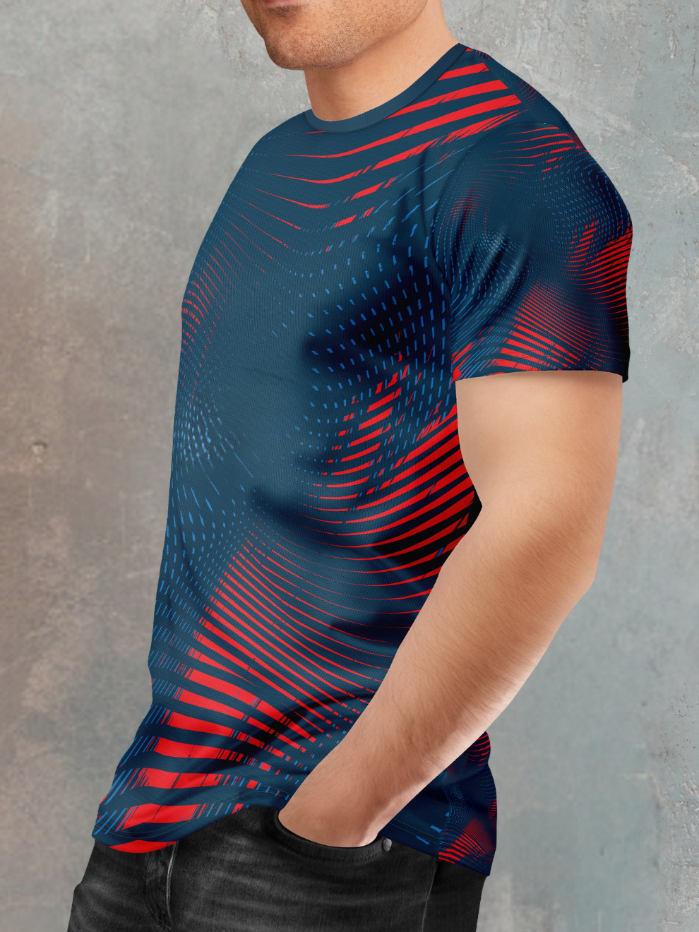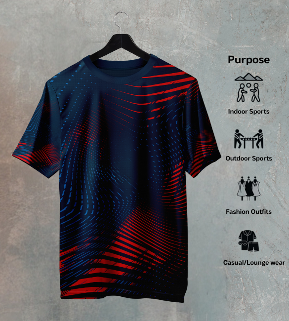 The geometric print on this tee is a statement of order and energy. Its clean lines and structured patterns create a dynamic, eye-catching visual that transcends basic athletic graphics. Set against a rich midnight blue base, the design offers a sophisticated contrast that is both striking and versatile. Thanks to durable sublimation printing, this all-over geometric print T-shirt ensures every angle and line is permanently fused into the fabric, guaranteeing a fade-proof, crack-resistant finish that endures.