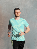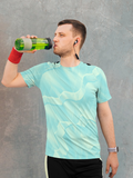 Mint Green Wavy Abstract Pattern Print Slim Fit T-Shirt for Men – Style Meets Performance!