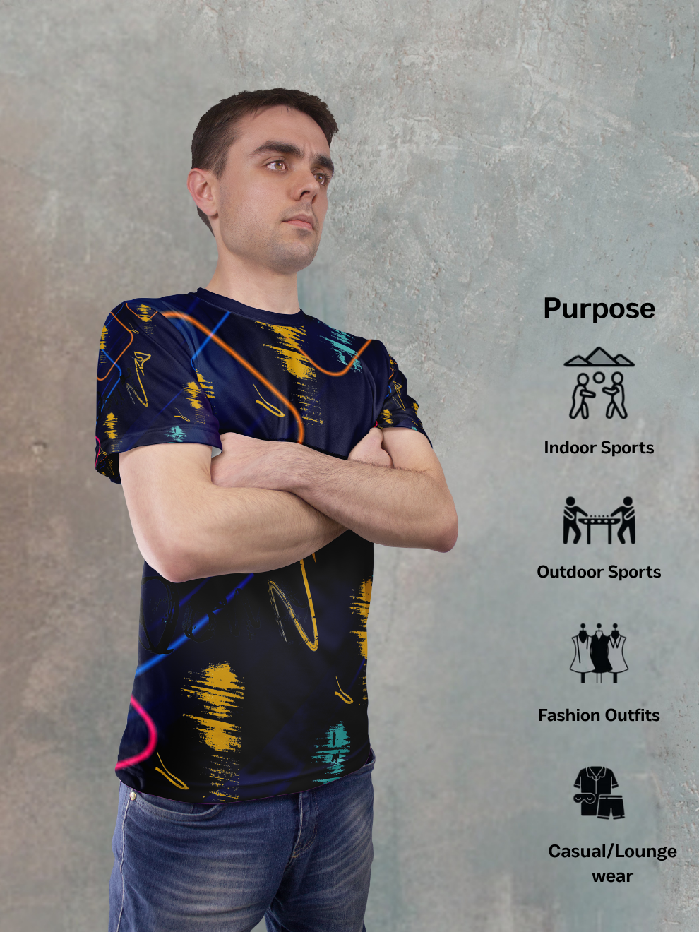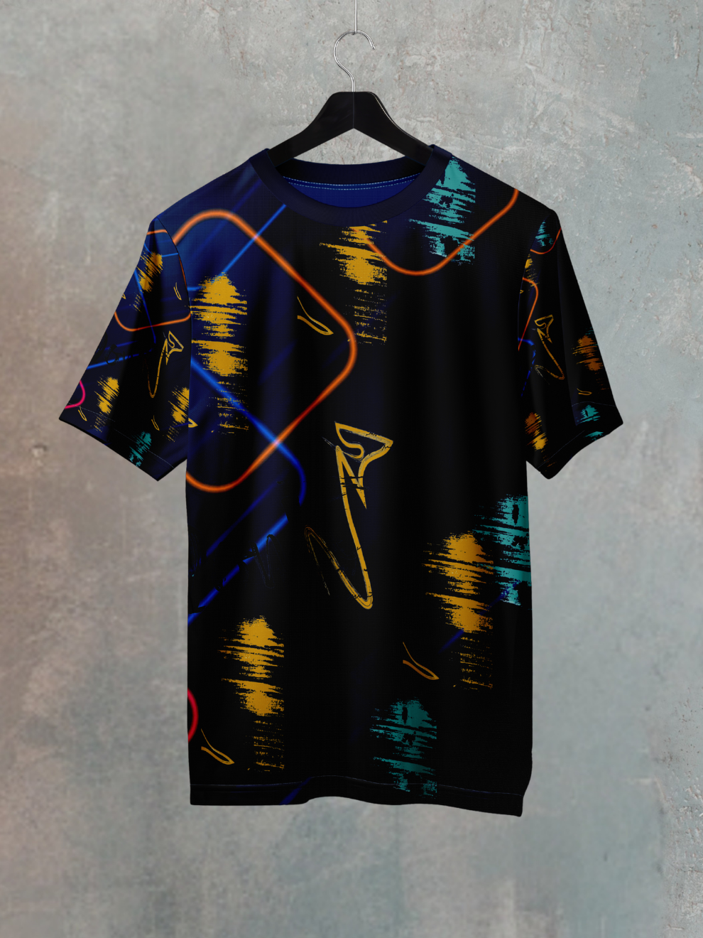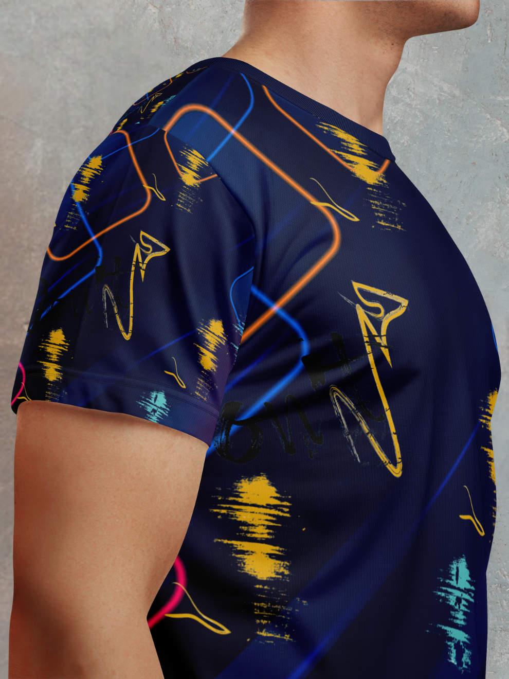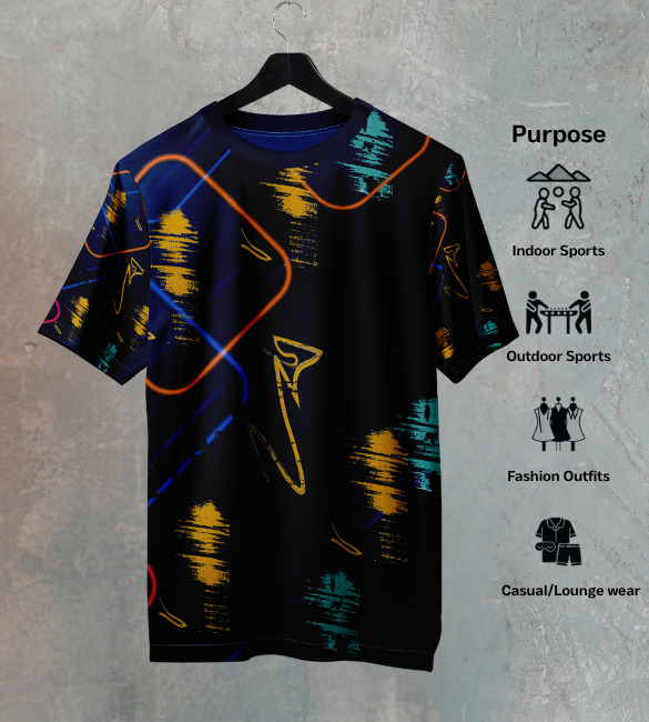 Step out of the shadows and command attention in the Neon Black Scattered Pattern Sports T-Shirt. This isn't just another basic tee—it's a high-voltage statement piece that merges cutting-edge athletic performance with head-turning urban style. Designed for the modern man who dominates both the gym and the streets, this premium sports t shirt features an electrifying scattered neon pattern against a deep black canvas, creating the ultimate best sports t shirt for men who aren't afraid to stand out.