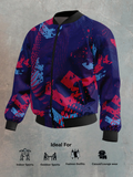 Neon Blue Ink Splash Pattern Slim Fit Sports Jacket