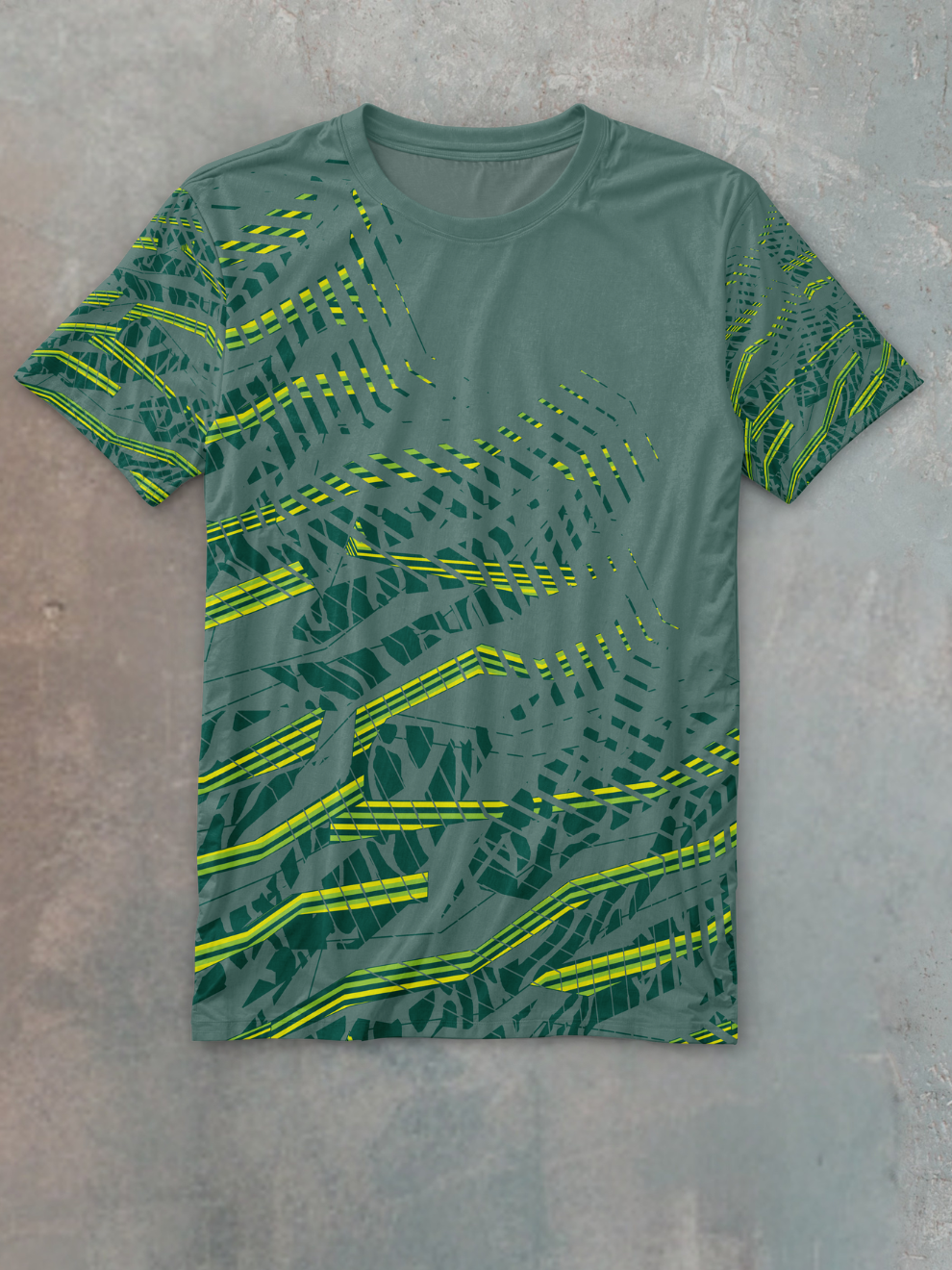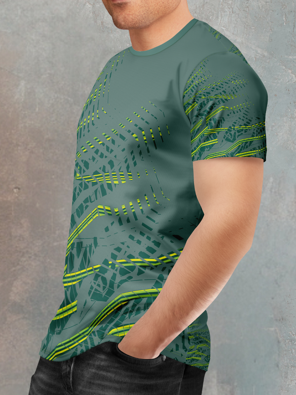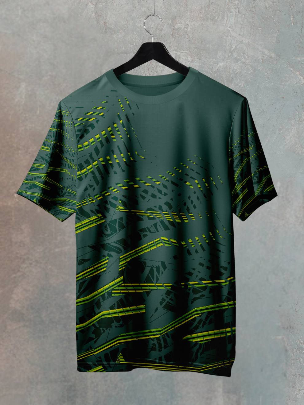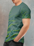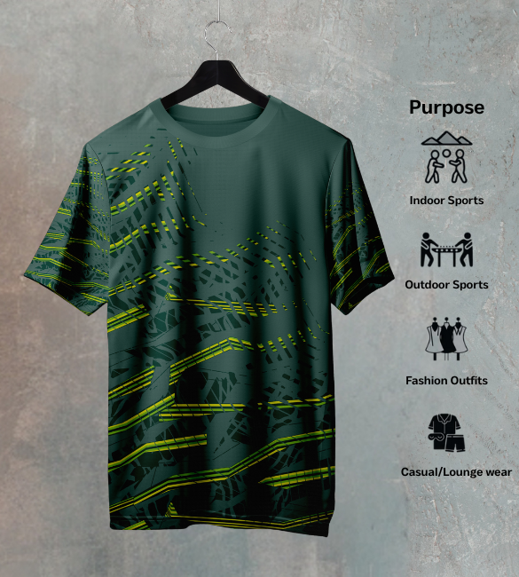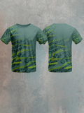 Unmissable, Bio-Tech Style: The primal forest green collides with futuristic neon lightning strikes, creating a look that’s both organic and electrifying. This versatile crew neck t shirt transitions seamlessly from high-octane training to standout streetwear, proving that peak performance can look radically bold.