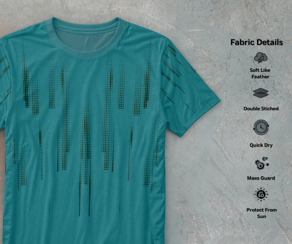 Dive into superior performance with the Ocean Teal Pulse Line Graphic Sports T-Shirt – your ultimate choice for the best sports jersey for men online in India that blends dynamic design with championship-level functionality. This premium sports t shirt features a captivating ocean teal base with rhythmic pulse line graphics, creating a visual representation of energy and flow that delivers both standout style and unbeatable performance at an incredible price point!