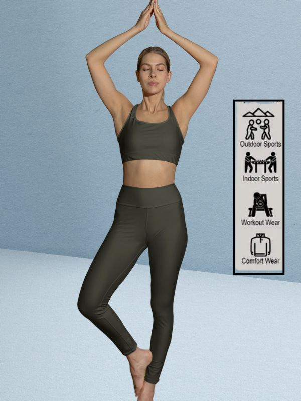 Upgrade your workout wardrobe with these classic olive green leggings – the perfect blend of fashion and function for any activity.