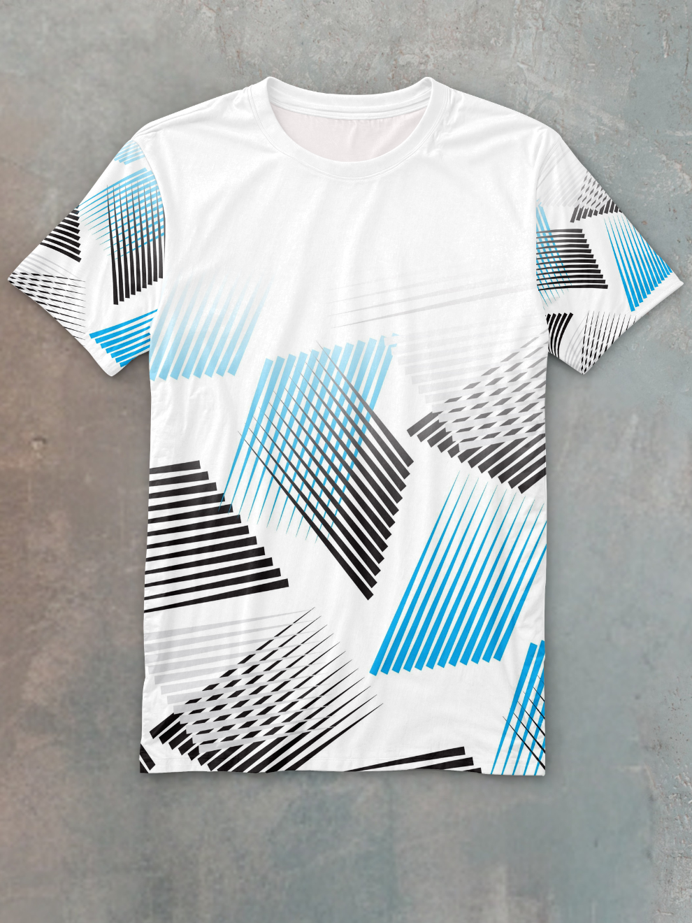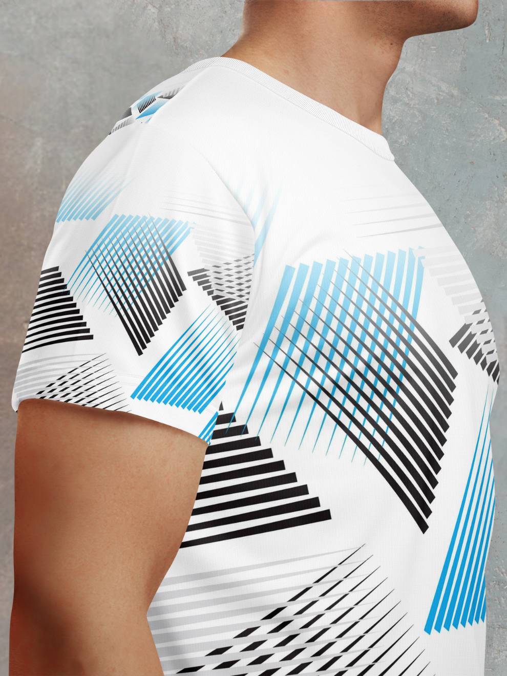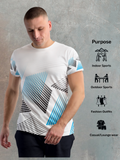 Define Your Performance: Pixel White Geometric Strip Sports T-Shirt – Best Sports Jersey for Men Online in India!
