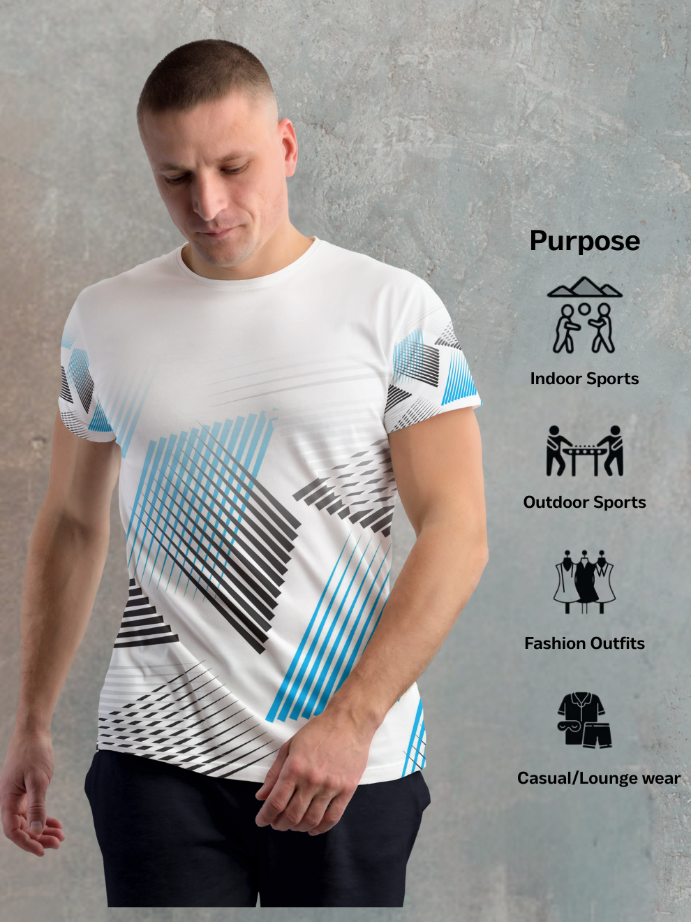 Step into the future of athletic wear with the Pixel White Geometric Strip Sports T-Shirt – your ultimate choice for the best sports jersey for men online in India at the best price. This premium sports t shirt features a cutting-edge pixel-inspired geometric pattern on a crisp white base, offering the perfect balance of contemporary style and high-performance functionality. Engineered for the modern athlete who values both aesthetics and performance, this tee delivers exceptional quality without the premium price tag!