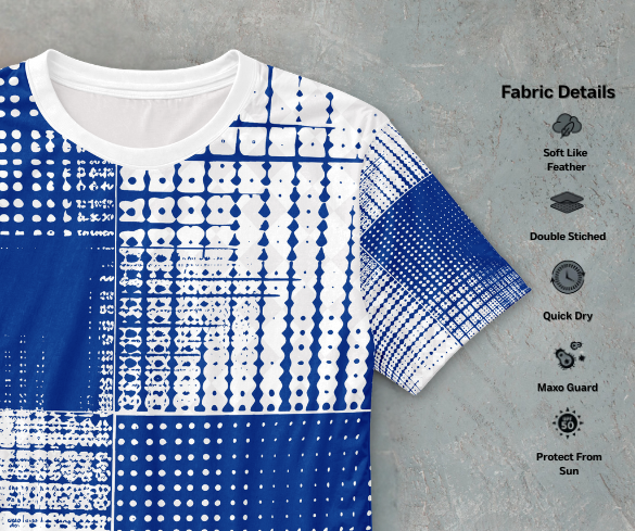 Harness the power of precision with the Storm Blue Abstract Geometric Grid Sports T-Shirt – the ultimate choice for the best sports jersey for men online in India that merges structured design with elite performance technology. This premium sports t shirt features a deep storm blue base with intricate geometric grid patterns, creating a sophisticated visual appeal that delivers both superior style and championship-level functionality at an unbeatable price point!