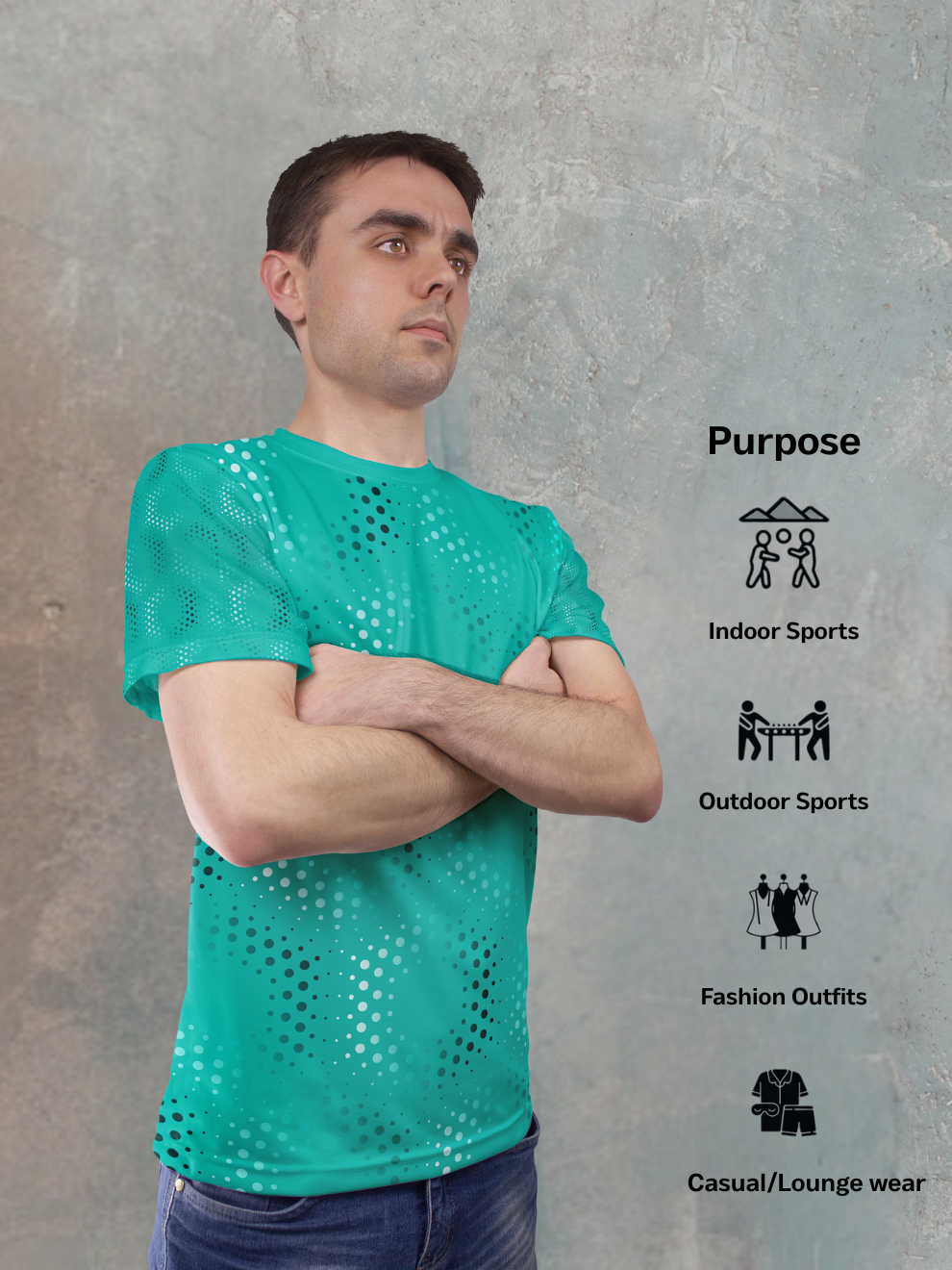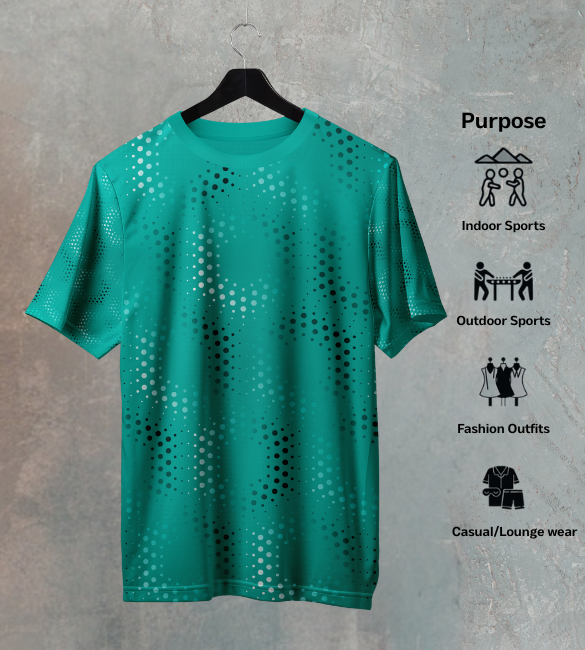 Find your focus and unleash controlled energy with our Teal Green Dot Fade Pattern Sports T-Shirt. Designed for the athlete who balances intense power with poised calm, this shirt merges a serene, sophisticated hue with a dynamic, fading pattern. It’s engineered for the man who knows that peak performance isn't about noise—it's about focused, relentless execution.