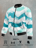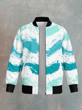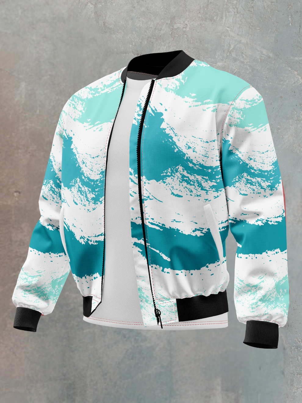 Teal Green Brush Wave Pattern Slim Fit Sports Jacket