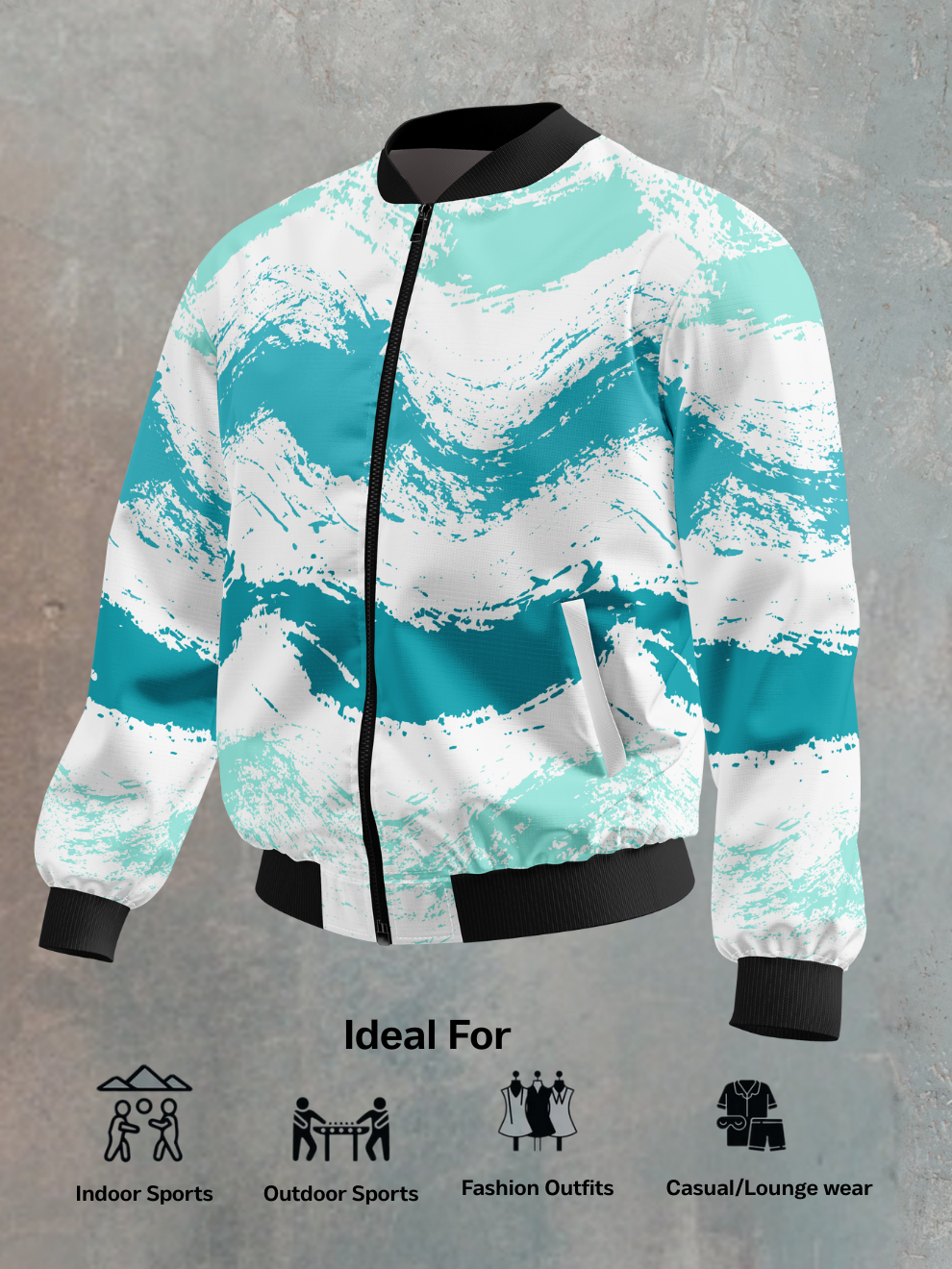 Stop blending in and start standing out. Introducing the Teal Green Brush Wave Pattern Slim Fit Sports Jacket from Maxosports – the definitive best sports slim fit jacket for the modern athlete. We've engineered more than just a jacket; we've created a second skin that fuels performance and makes a powerful style statement. If you're searching for a slim fit sports jacket that combines elite functionality with head-turning designs, your search ends here.