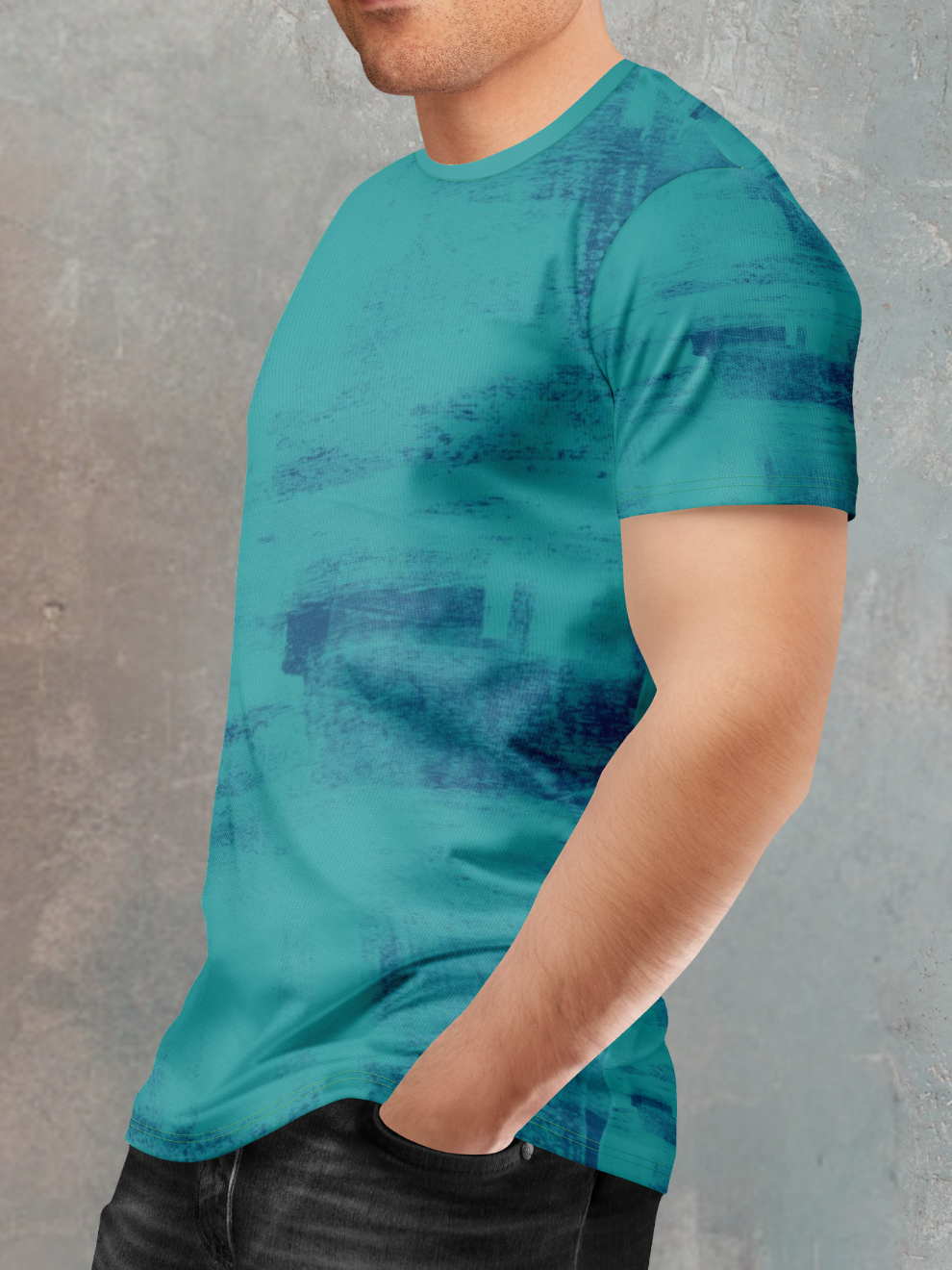 Unleash a wave of creativity and performance with the Teal Green Brush Stroke Sports T-Shirt. This premium sports t shirt for men features a vibrant teal green canvas, swept with bold, expressive brush strokes that capture the energy of artistic passion and athletic motion. Designed for the athlete who values unique self-expression, this crew neck t shirt delivers a head-turning, artistic aesthetic backed by the high-performance engineering required to dominate your session.