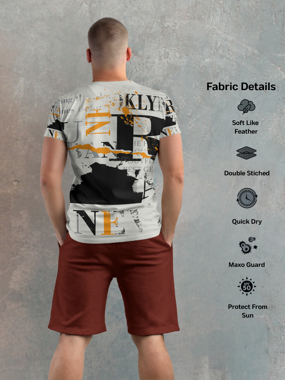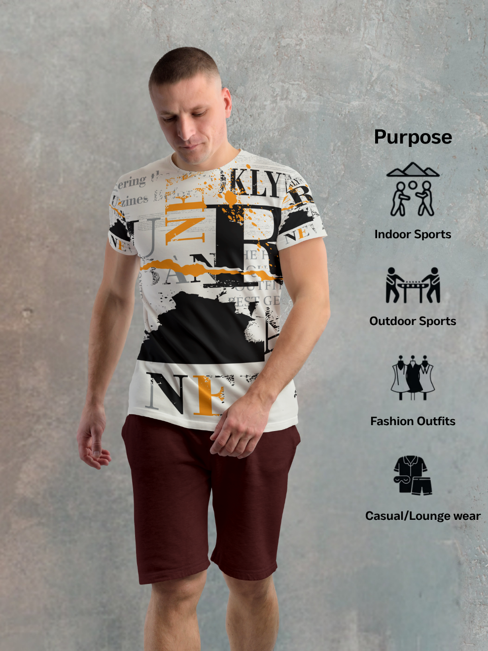 White Graphic Art Pattern Slim Fit Sports T-Shirt for Men - Where Art Meets Athletic Performance