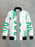 Make a statement that goes beyond ordinary sportswear. Our crisp white base serves as the perfect backdrop for the innovative Green Geo Stripe pattern, accented with strategic white dots for a truly unique visual appeal. This isn't just another sports jacket - it's a fashion-forward piece that transitions effortlessly from the field to casual wear. The fade-proof printing ensures your jacket maintains its sharp, clean look through countless washes and intense training sessions.