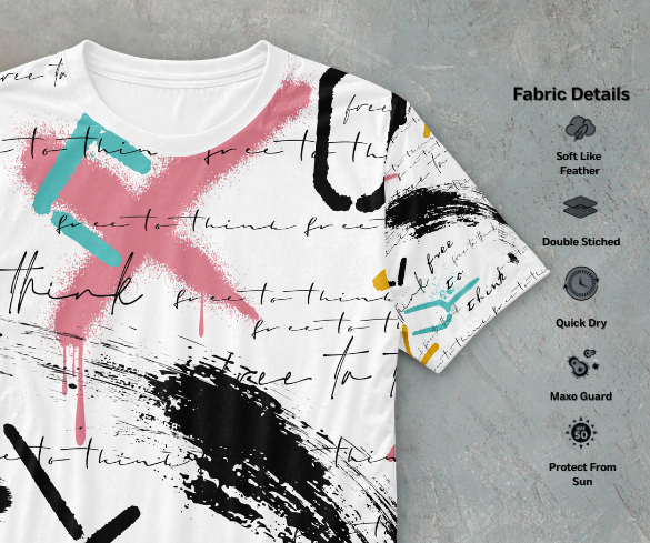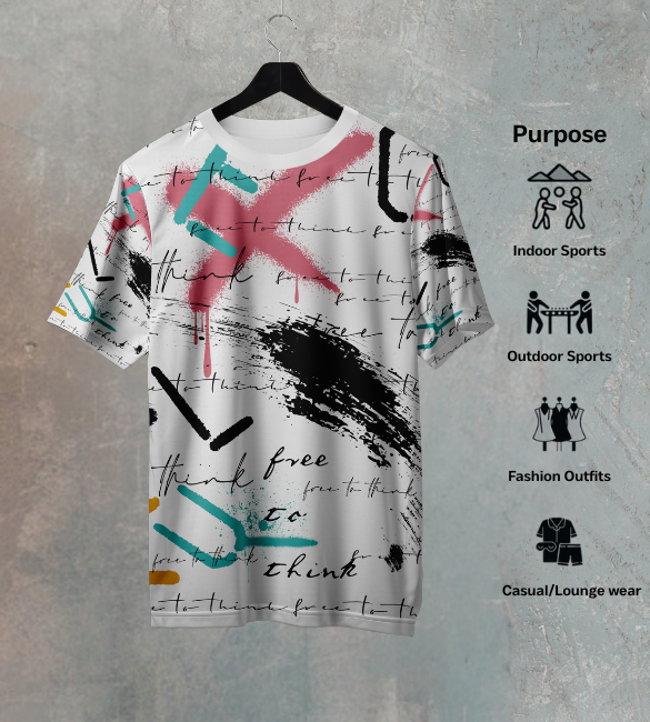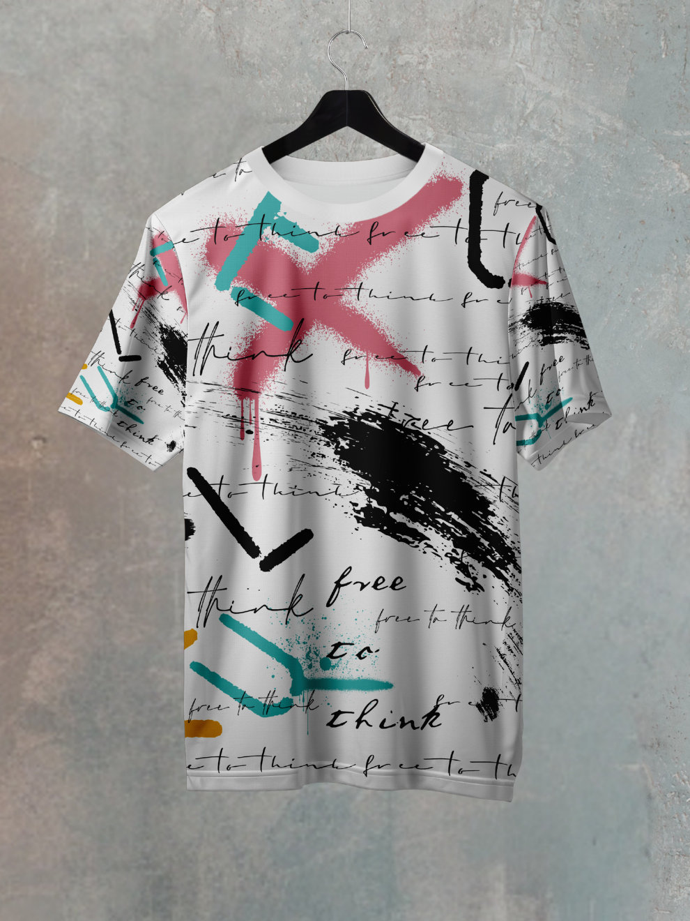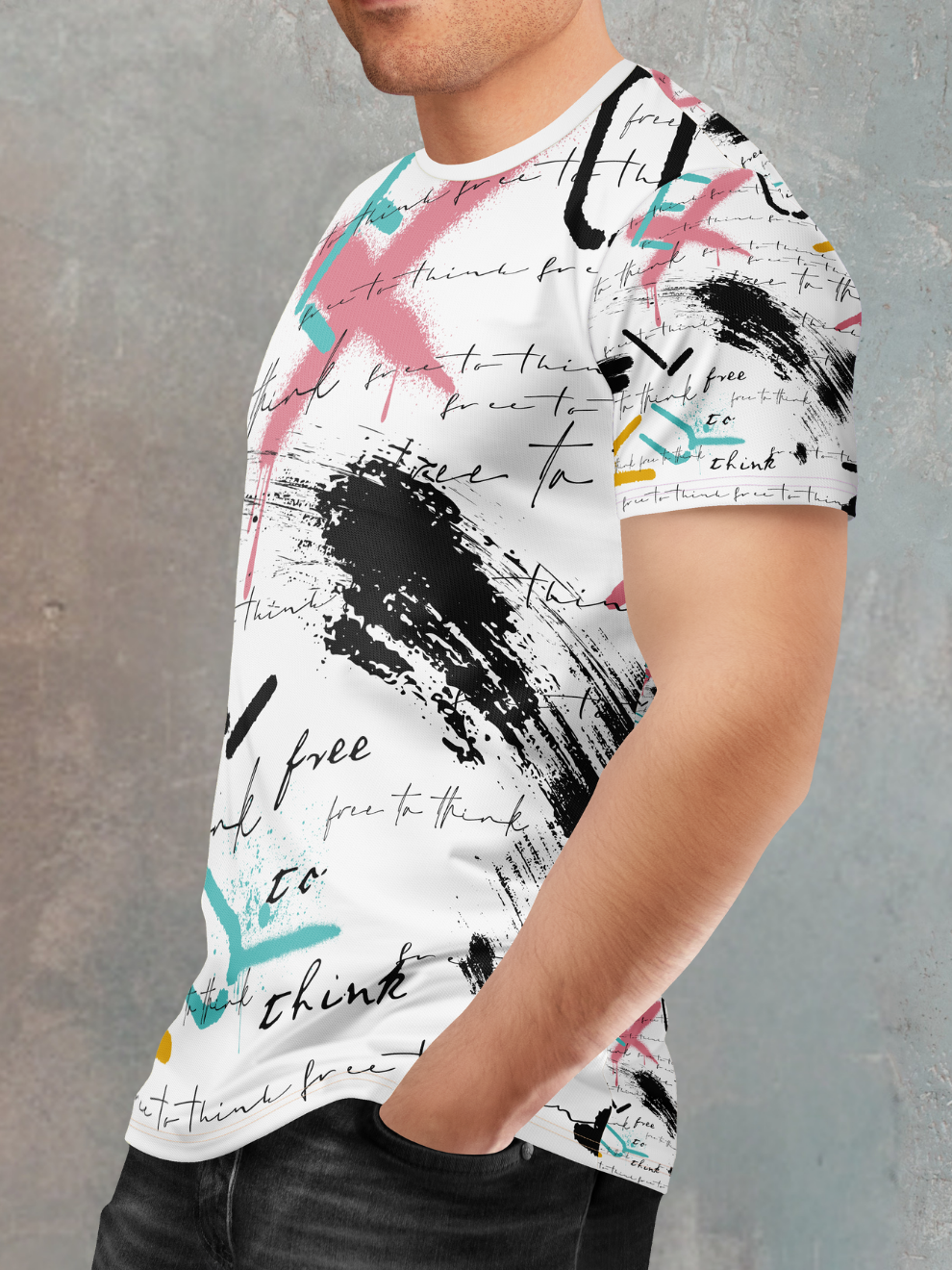 White Color Splatter Pattern Slim Fit Sports T-shirt for men