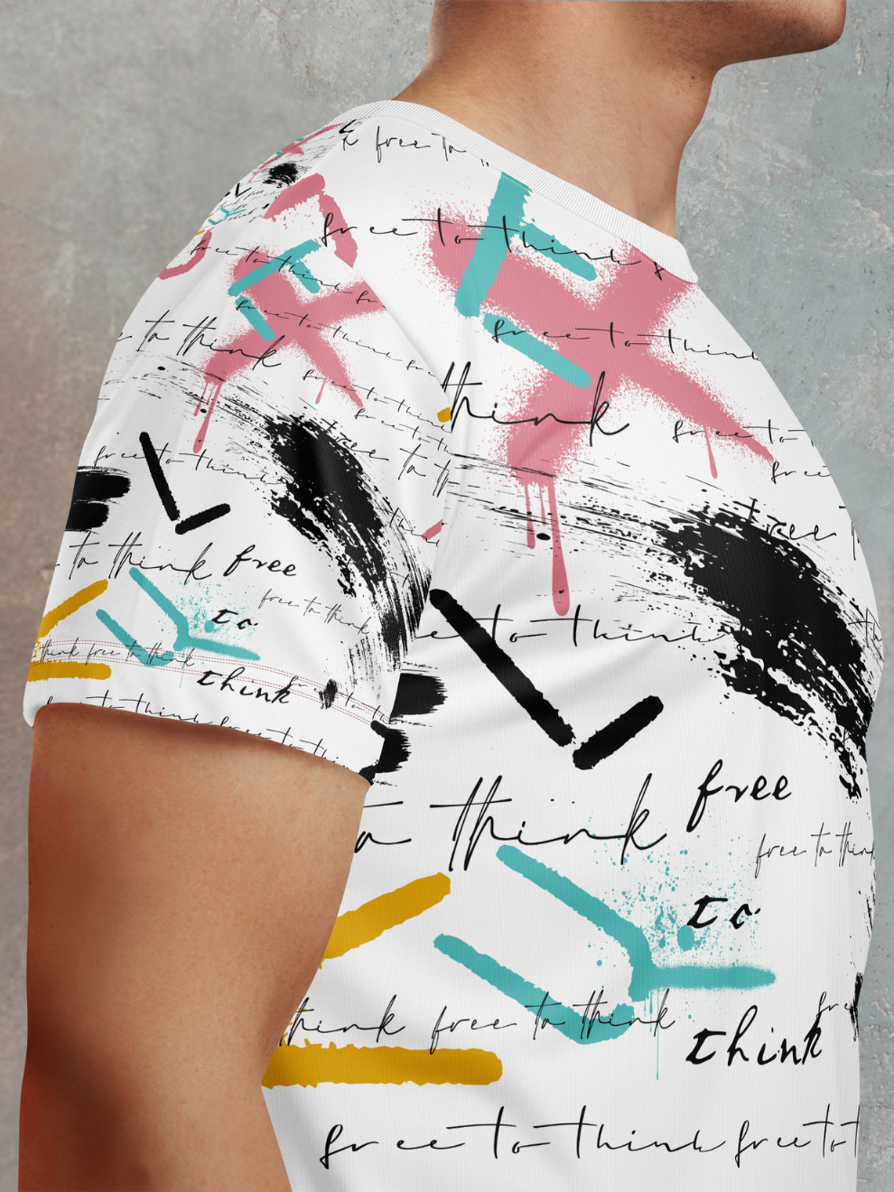 White Color Splatter Pattern Slim Fit Sports T-Shirt for Men - Explosive Style Meets Elite Performance