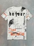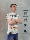 Unleash the Rush: White Script Rush Pattern Sports T-Shirt for Men